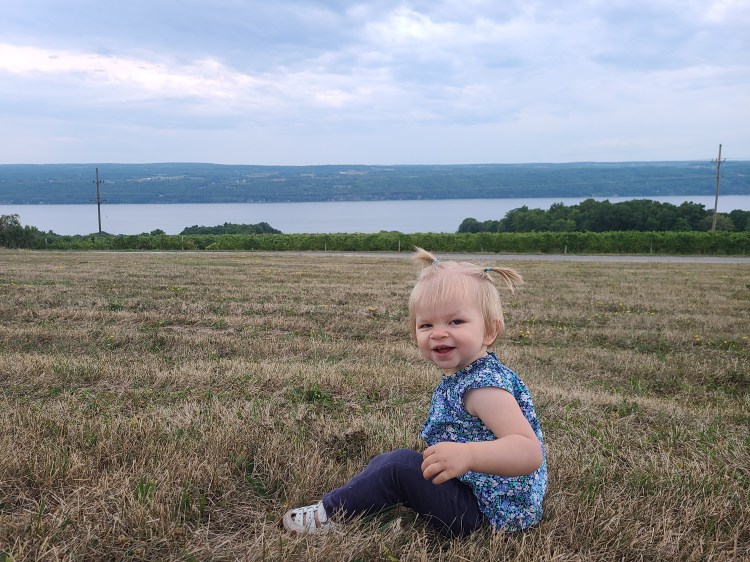 The winery was perched along the shore of Seneca Lake and had gorgeous views of the lake and surrounding area. Once we set up and ate dinner, Little Bird and I explored the hillside. After she went to bed, Will and I enjoyed a bottle of wine while watching the sunset over the lake.