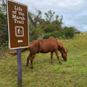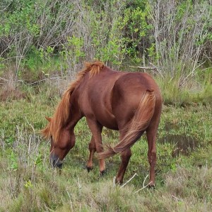 Just as we were pulling into the parking lot at the marsh hike trailhead, we saw a few horses crossing the road. We looked for a minute but continued down the boardwalk around the marsh. It just so happened, they made their way right next to the boardwalk as we rounded the final bend and we had an amazing view of them. I could have stood there all day watching them, especially the mama and colt, who made their way into thicker brush fairly quickly. The others lingered and we were in awe.