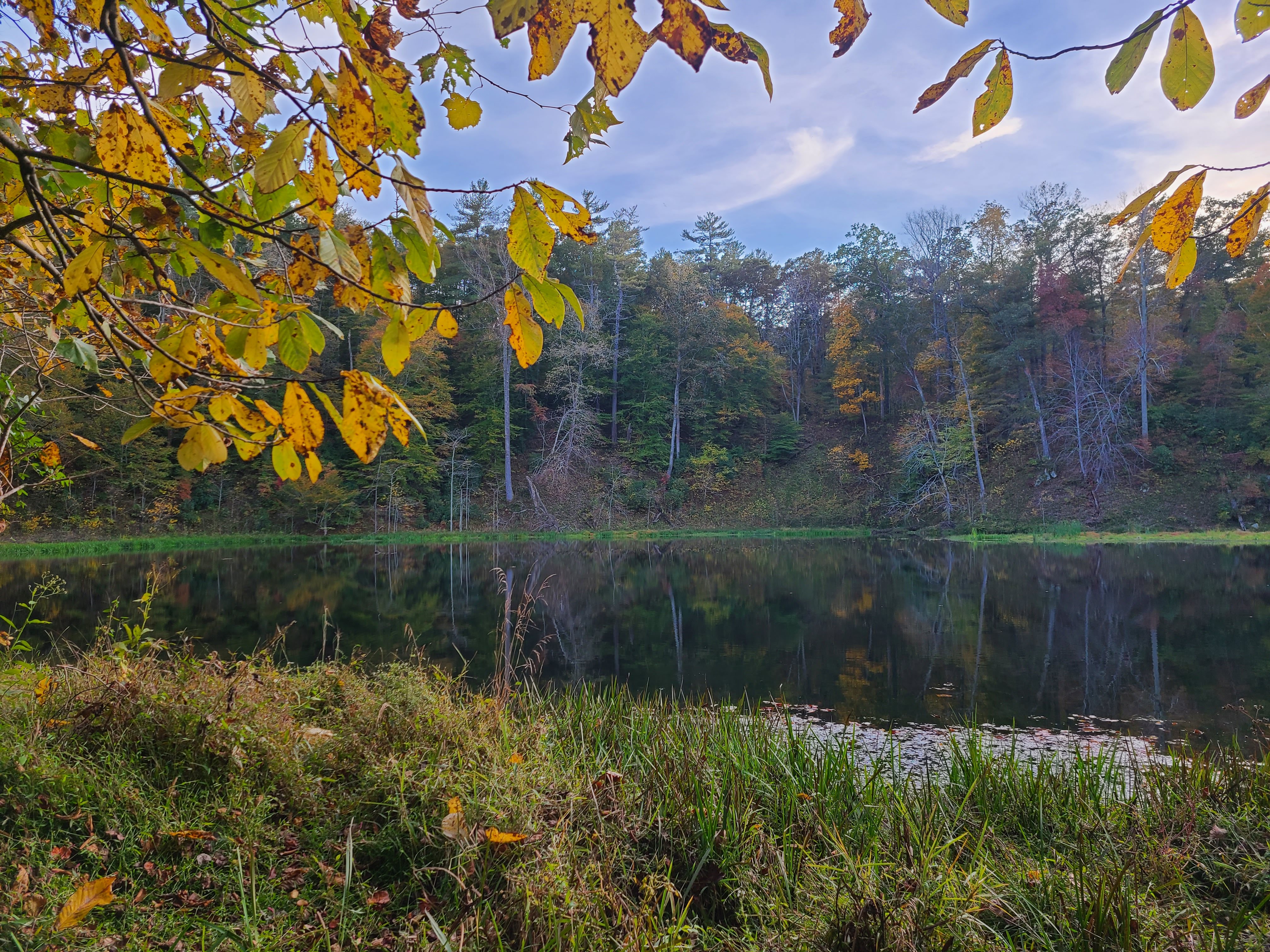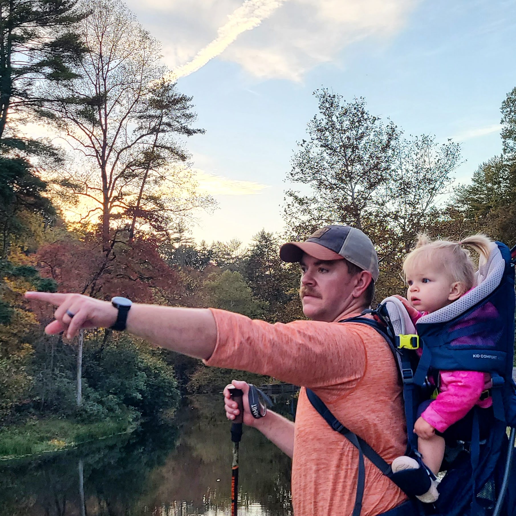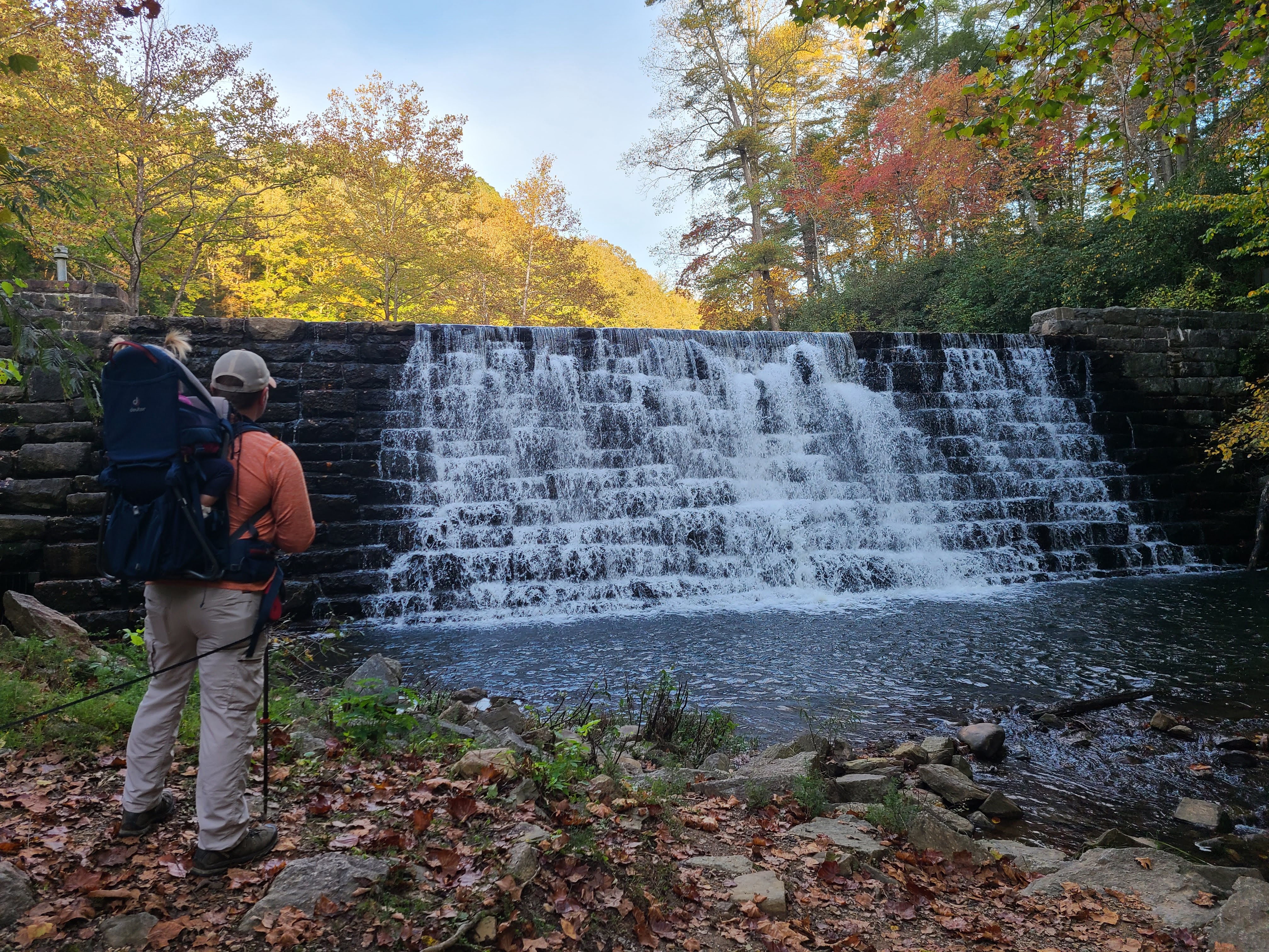 Once we made it over that slight challenge, the trail evened out and was a lovely walk around the lake. By this time, the sun was starting to dip a little and highlighted the leaves beautifully the entire walk. Of course, being by a lake, Will was able to scope out some fishing spots that he and Little Bird hit up the next day.
