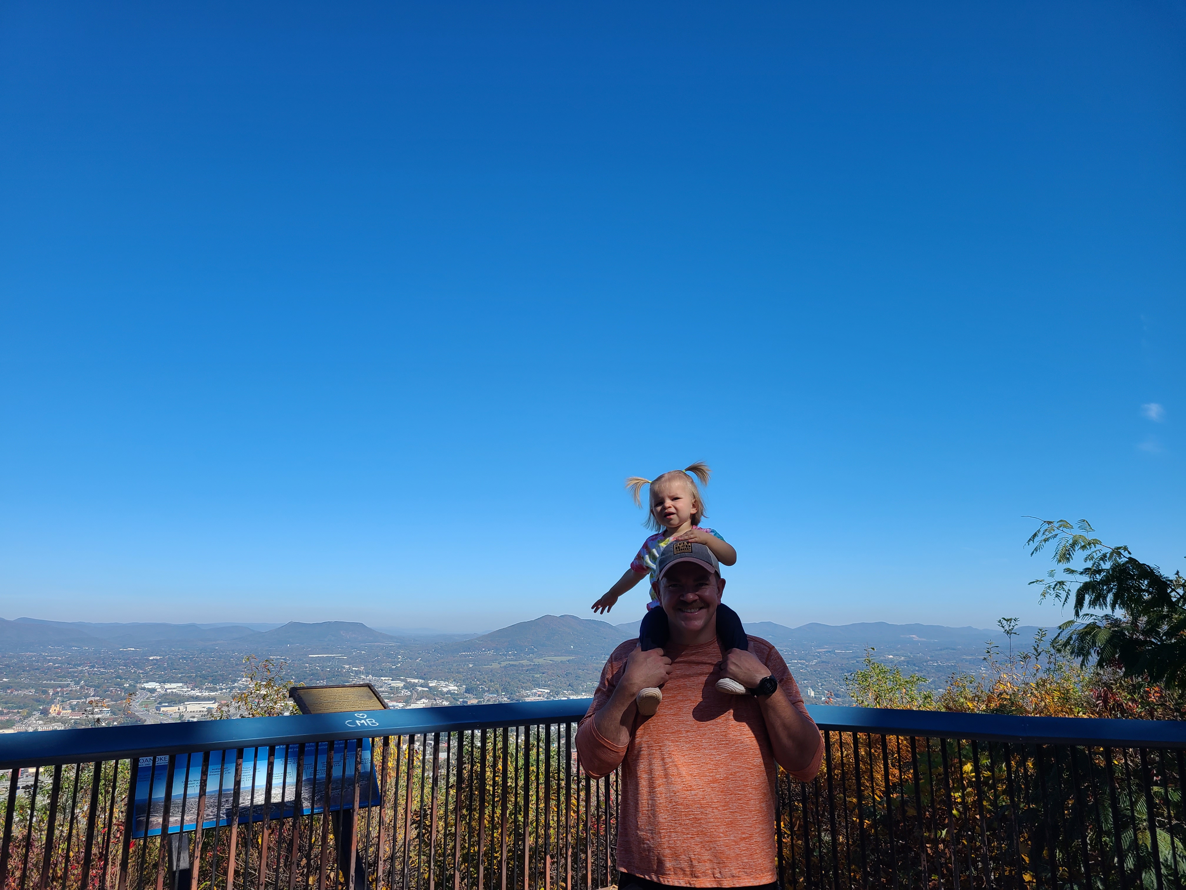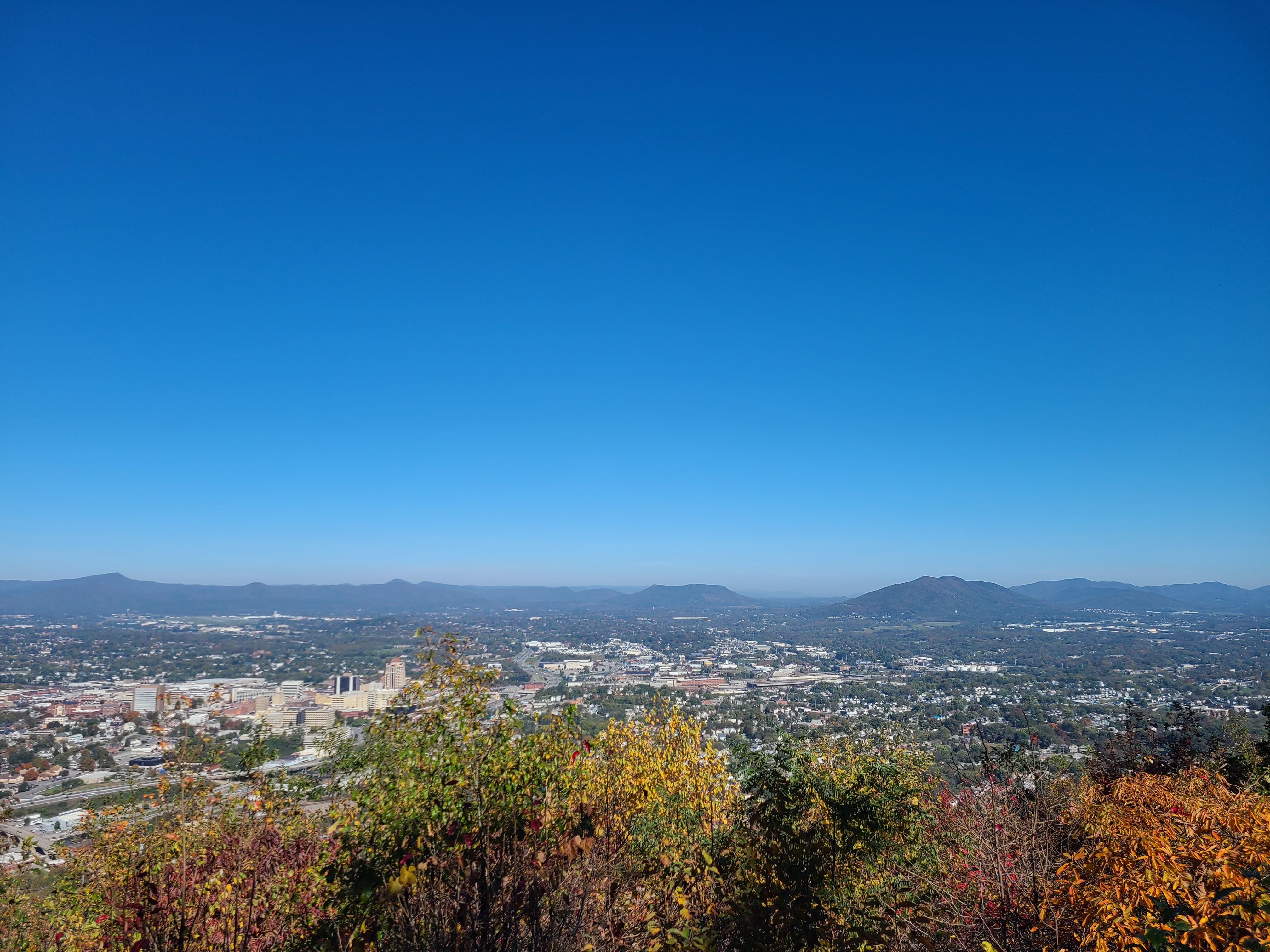 It was very strange driving through the city streets of Roanoke, then taking a single turn that took us onto a beautifully forested road winding up the mountain. It was a completely unexpected drive. As we made our way to the top, we knew we were going to have amazing views.