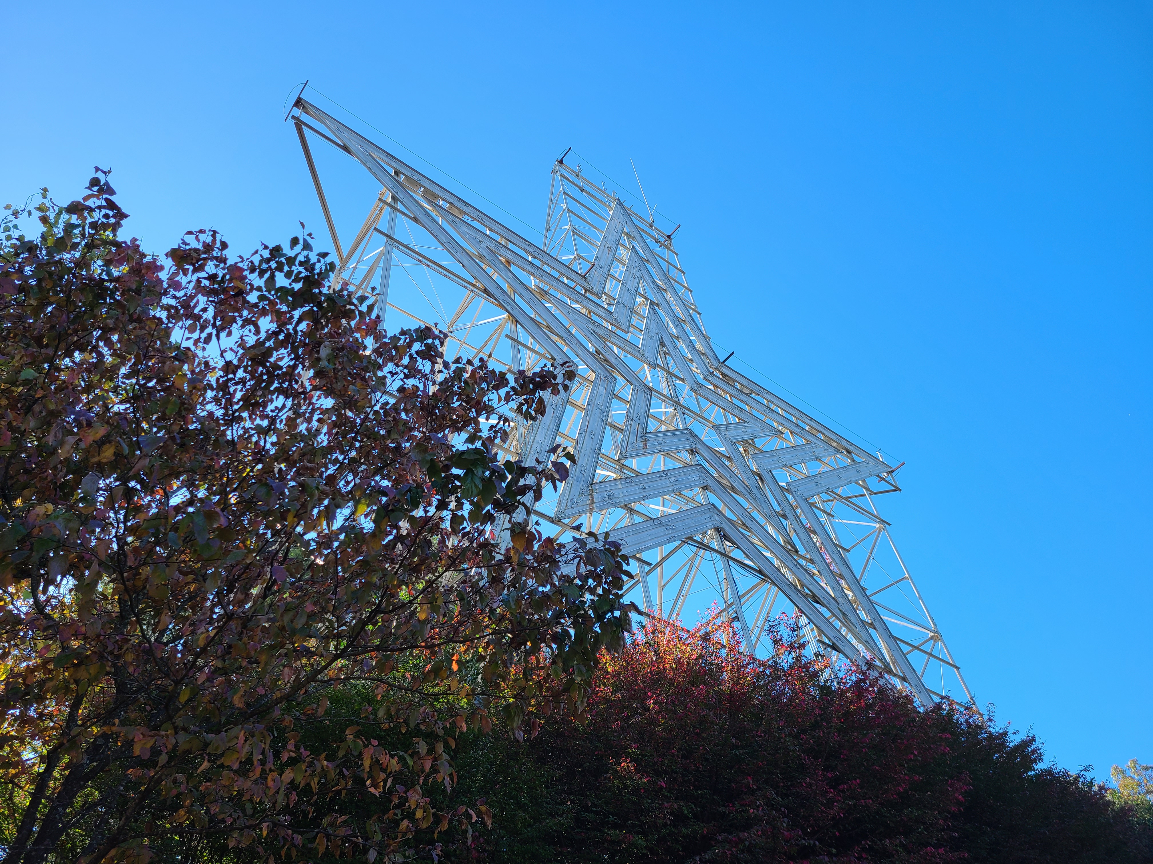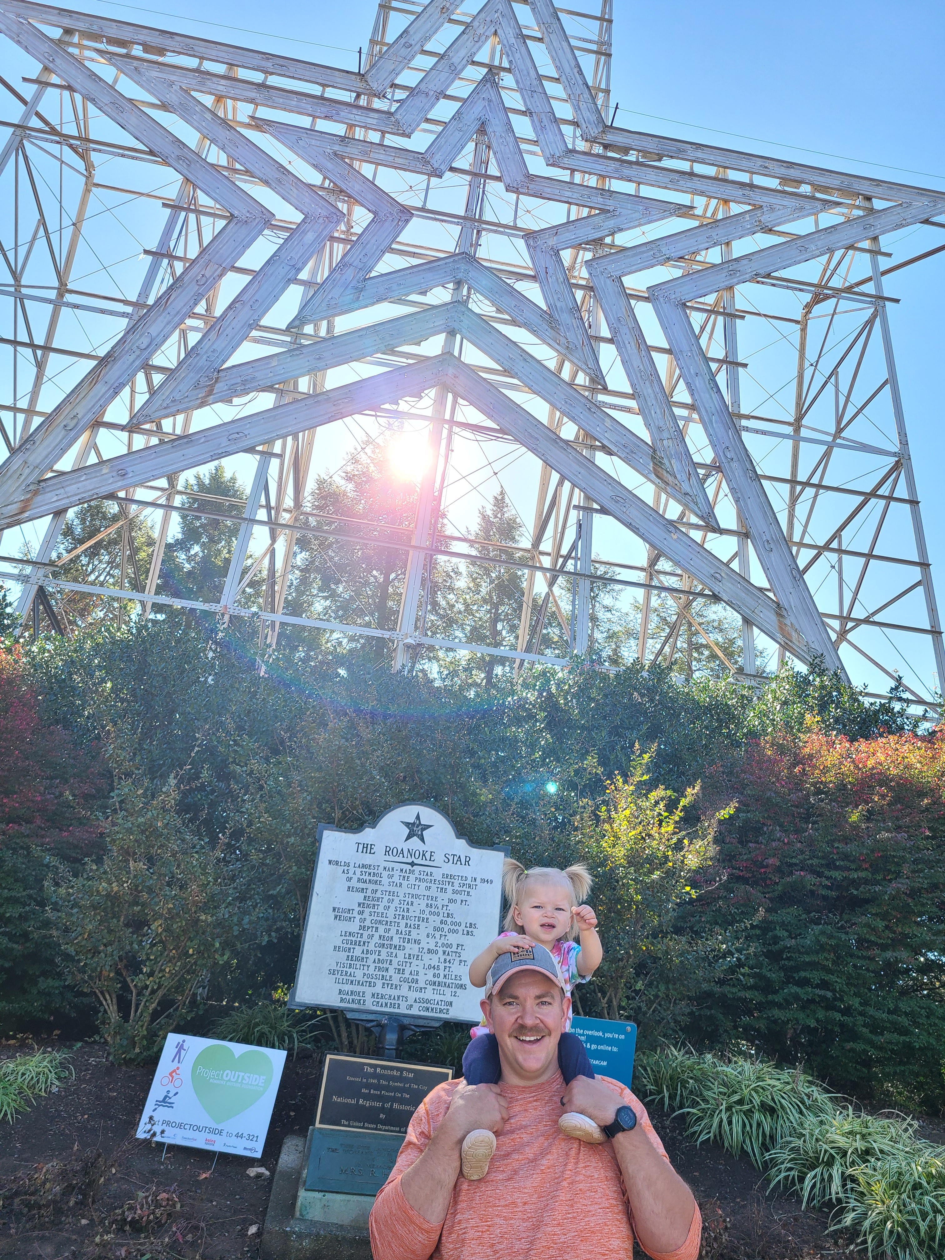 The road took us to a parking lot at the base of the star. According to the sign, this star is the world’s largest man-made star and was built in 1949. The City of Roanoke has built a fantastic park around the star, so we visited the overlook then wandered along some of the many trails around the top of the mountain. Little Bird was in heaven running us all over the place and picking up all the leaves she could find (there were a lot).