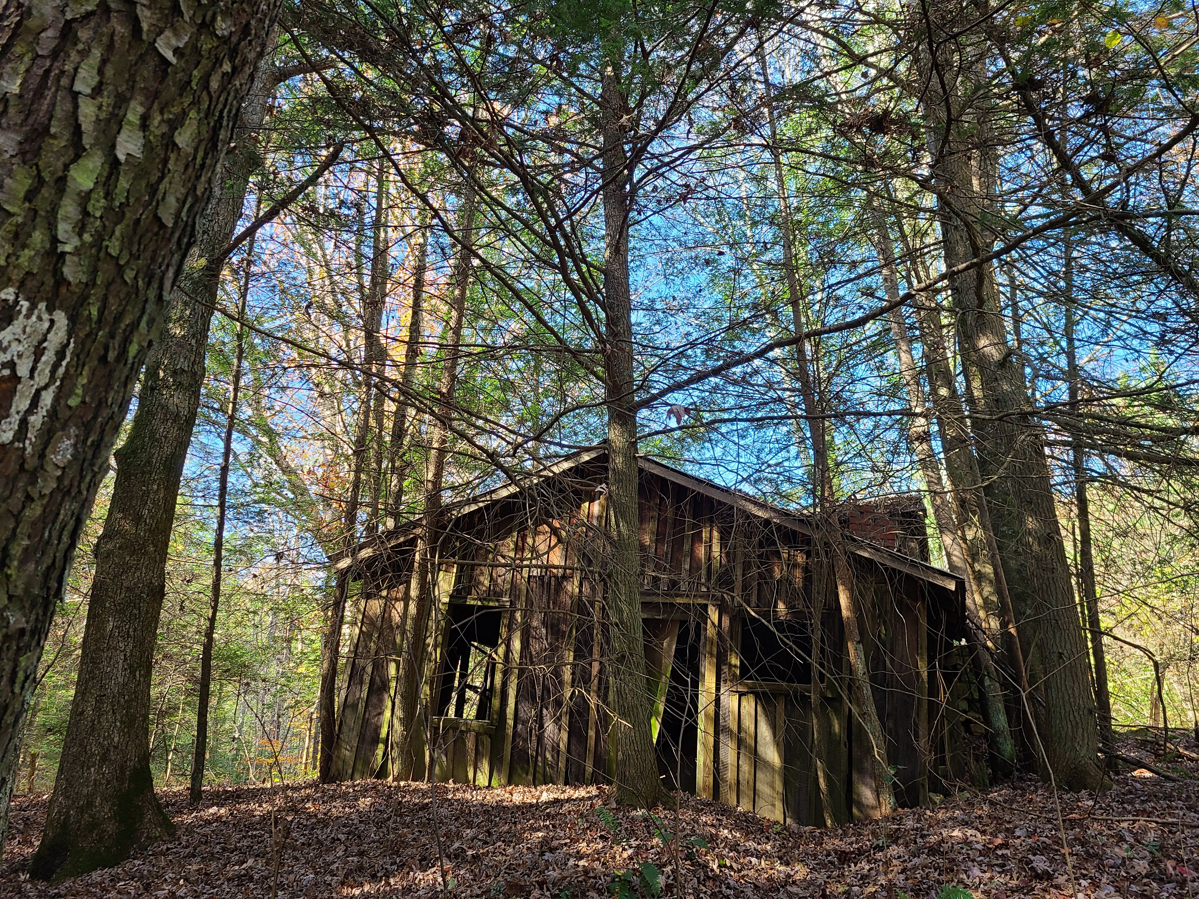 There were 2 small waterfalls along the trail, and after we passed them, the trail headed up to the top of the adjacent hill. As we hiked, we came across 3 abandoned cabins in the middle of nowhere. It was like there was a neighborhood in the middle of the forest. I am usually a little creeped out by abandoned cabins in the woods, but I happened to be in the middle of reading a book about a serial killer who had built a structure in the woods that he used to torture his victims before killing them. So that added a little to my experience and imagination.
