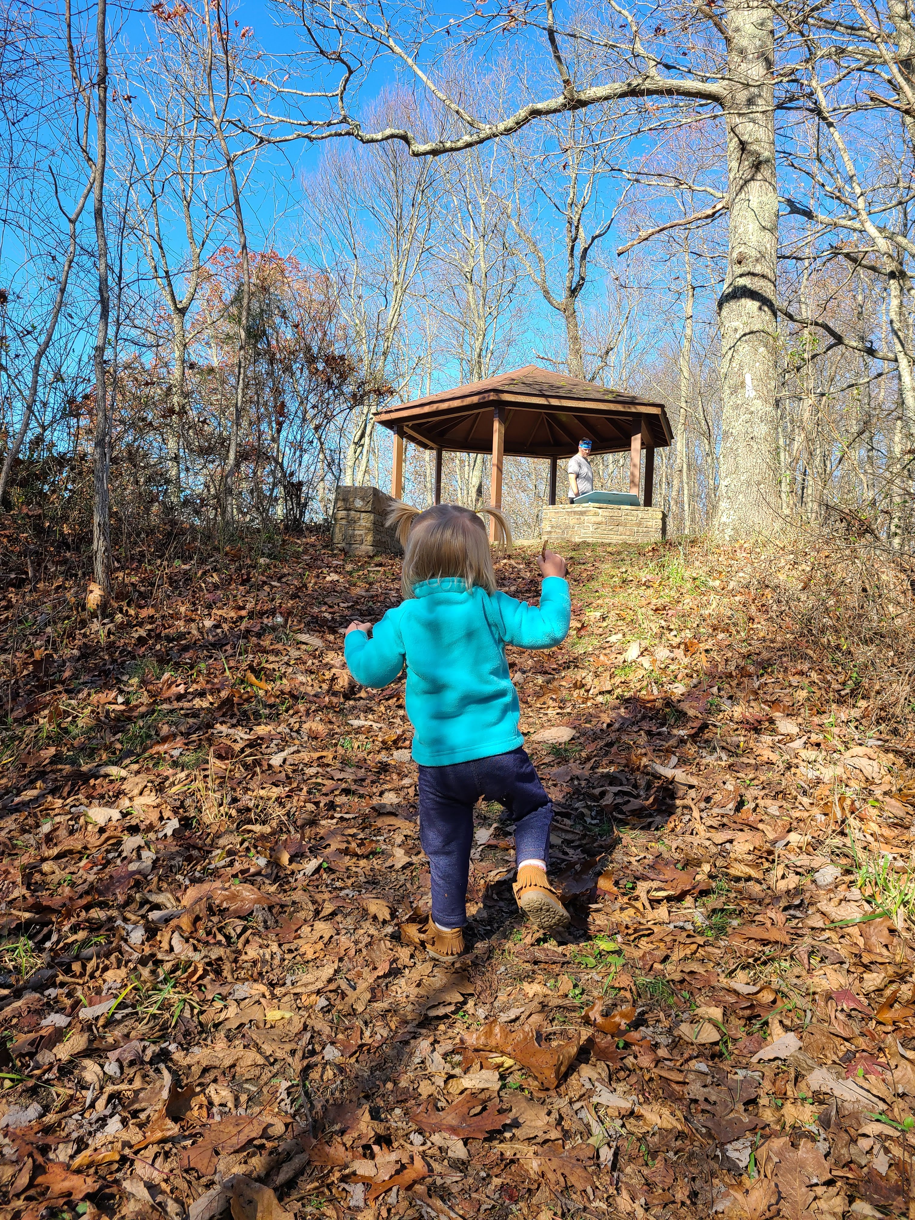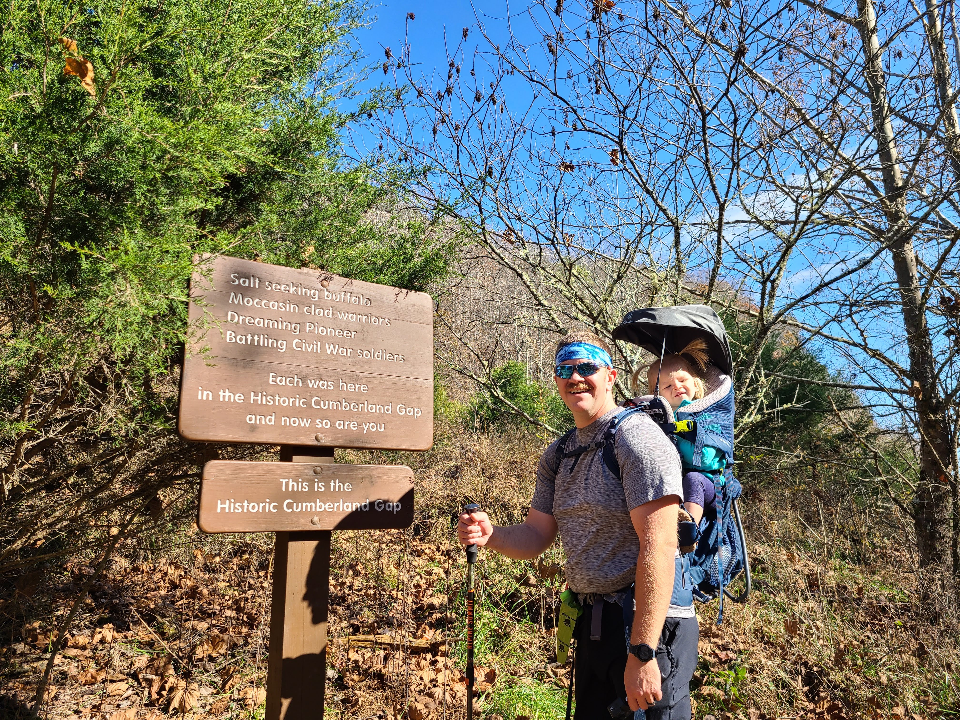 The drive to the park took us through some absolutely beautiful country with great views. From the overlook we stopped at, you could see so far that we could just make out the Smoky Mountains on the horizon. We also drove through the Cumberland Gap Tunnel. We are learning that Little Bird is apparently not a fan of tunnels, so the poor thing cried when we went through each direction. You would never know this girl was born in Pittsburgh and had to go through a tunnel on her way home from the hospital. As a toddler, it would be jarring to go from bright and sunny to very dark, so we of course did our best to reassure her and describe what was happening, including counting down until we emerged.