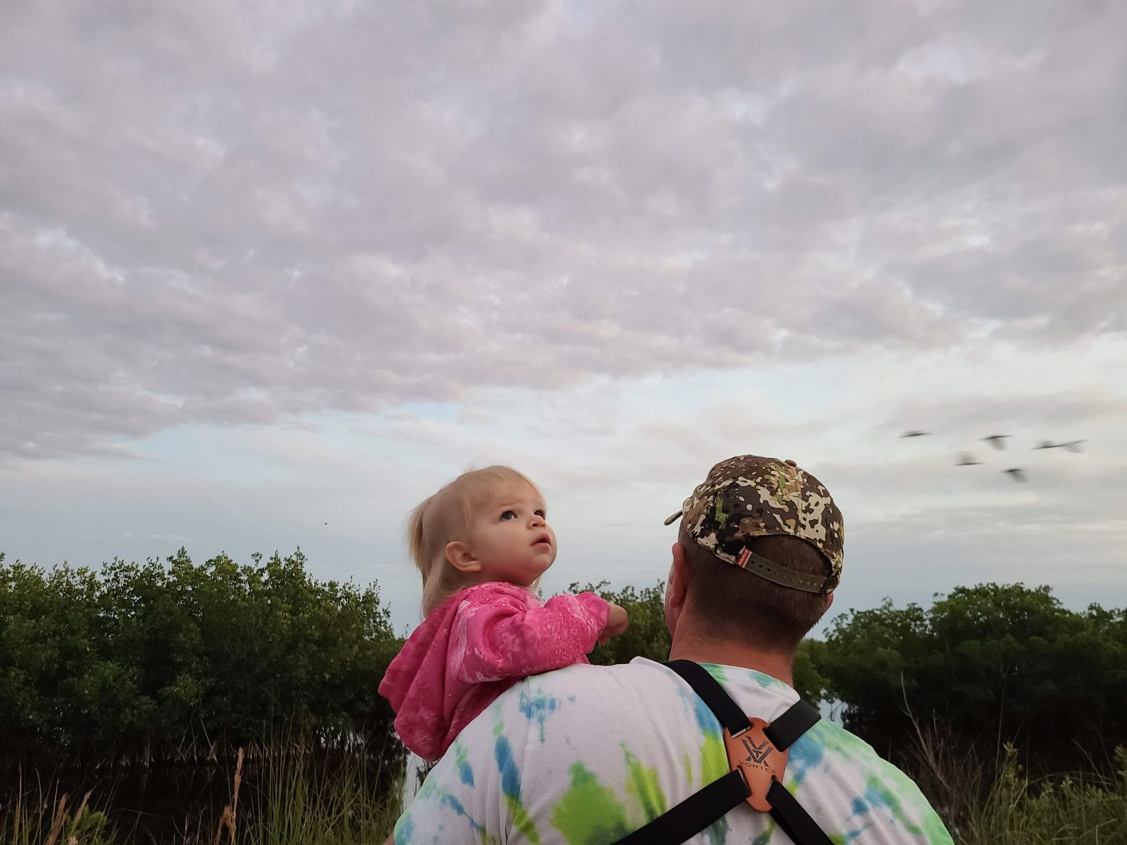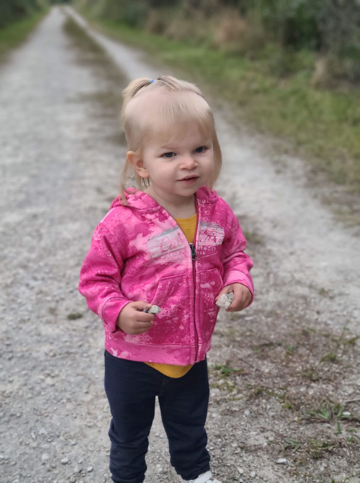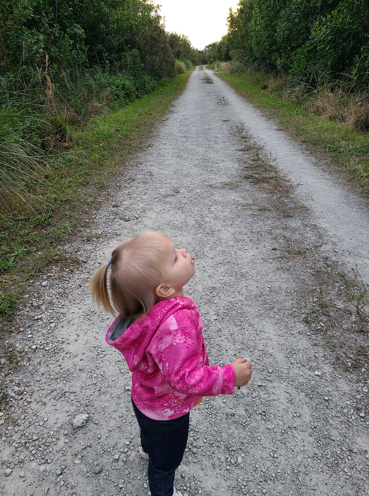 Our Little Bird did not know quite what to make of our evening outing, but she went along with it and was delighted to find rocks and leaves and the usual treasures along the trail. It was not until the birds started coming in consistently that she really even noticed them, but she squawked right along with them and started pointing them out as they flew overhead.