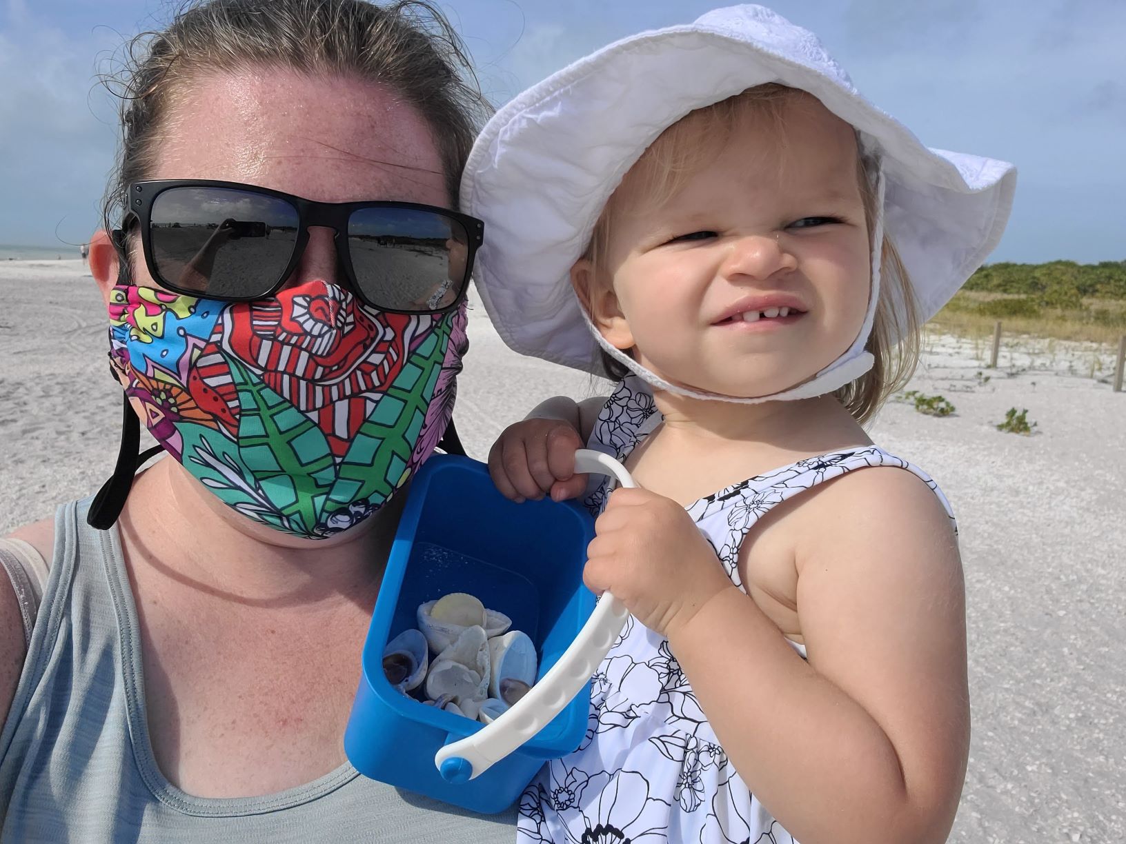 While Will packed things up, I took Bird on a quick shell searching adventure, where we did find a couple of fun shells but hardly left the immediate vicinity. It was definitely not the long beach walk along the water we had hoped for, and soon we were on our way back to the truck.