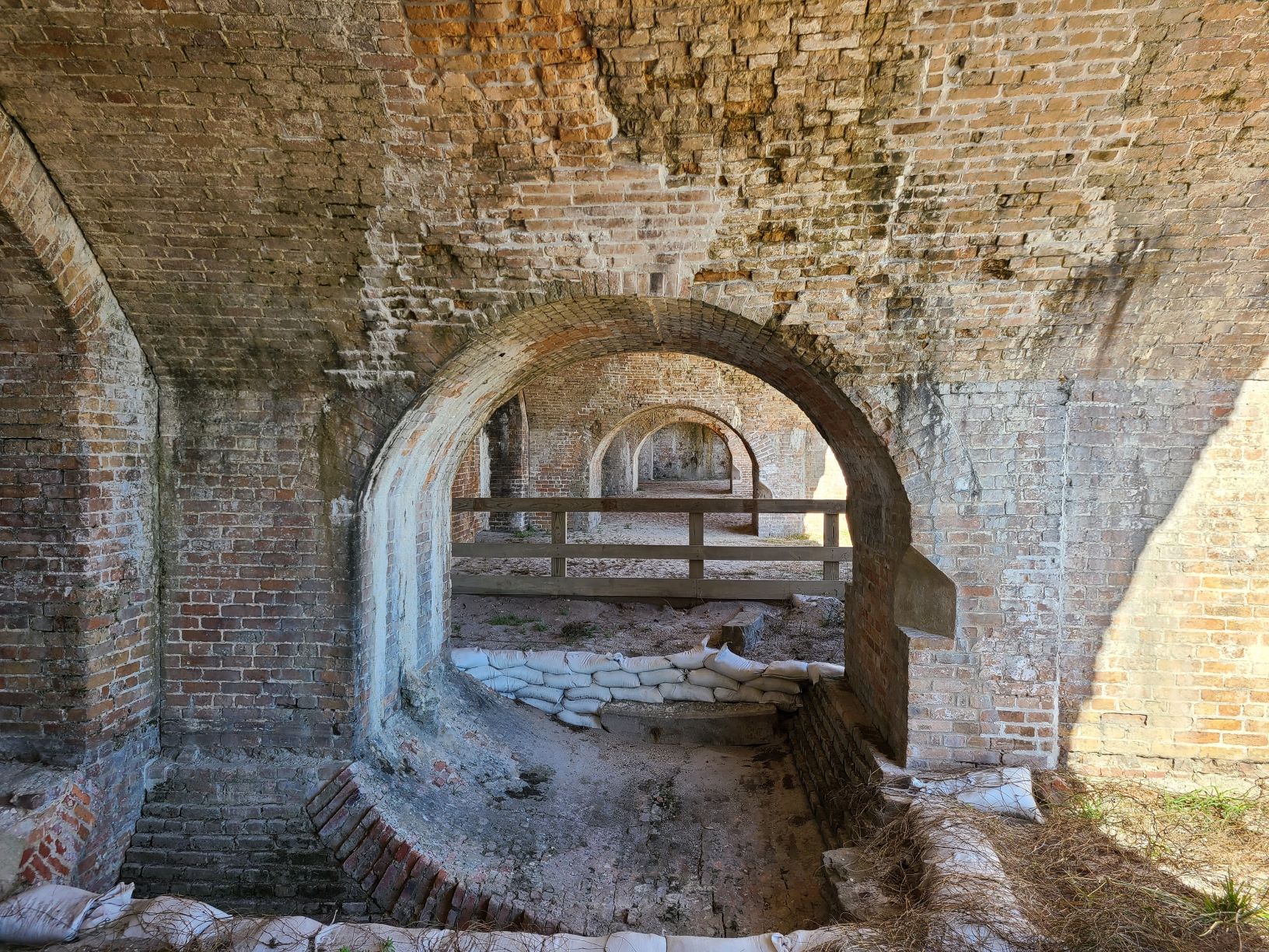 The walking tour led me through various rooms and all through the fort, including up to the base of one of the largest cannons, which offered amazing views of the surrounding bay and Gulf. The fort is situated right at the mouth of Pensacola Bay and was a very strategic location to fend off foreign invaders and also came into play during the Civil War. It is also where American Indians, including Geronimo, were held as they were being led from their native lands to reservations in Oklahoma. Because it has been used at different times through history, it is easy to see where renovations and upgrades have been made over time. I loved having the time to really look around and read the signs. I also loved that I was the only visitor in the entire fort. I saw 2 park rangers and a couple of guys who were doing some work at the fort, but other than that, I had the place entirely to myself. It was indulgent!