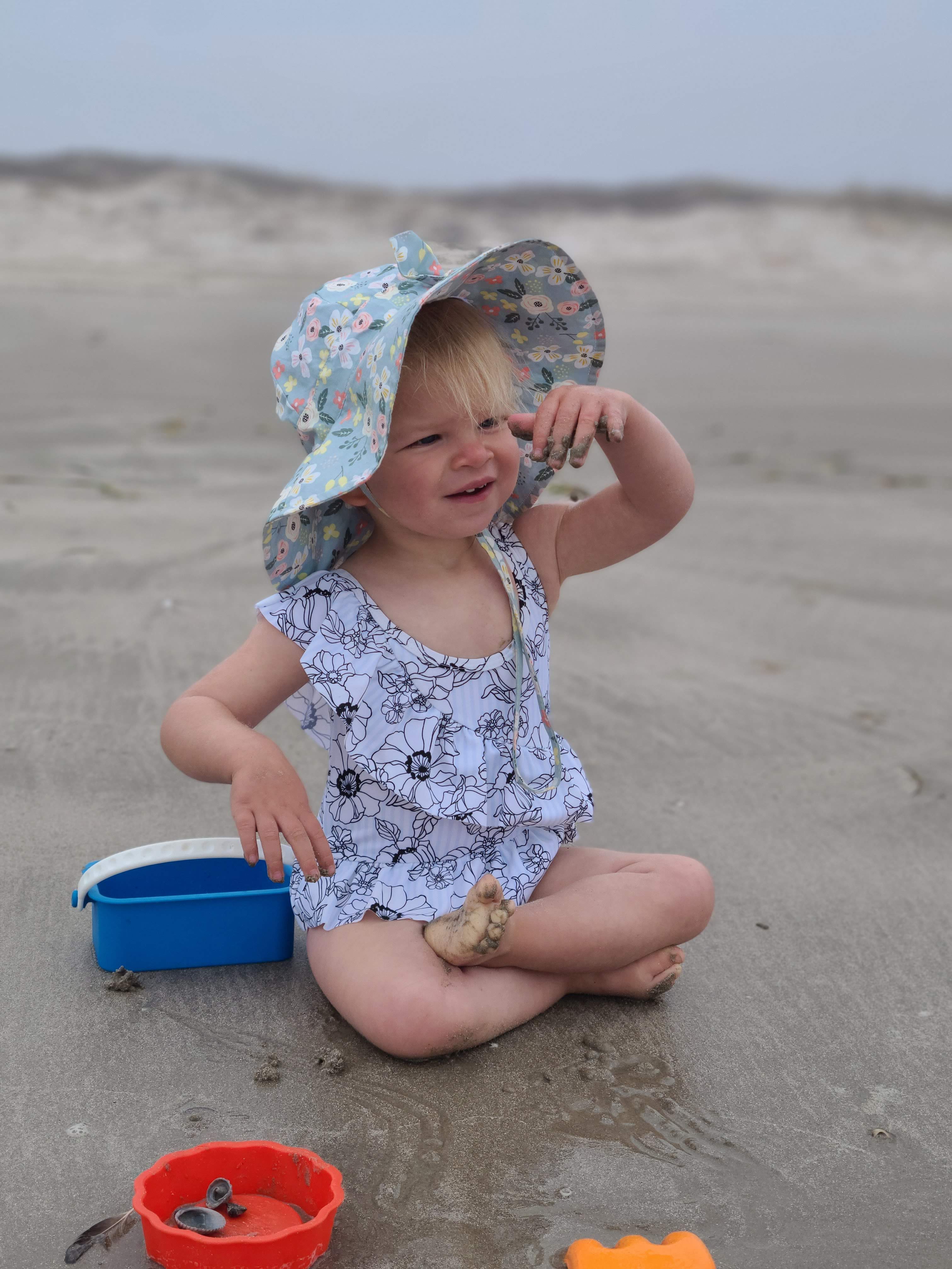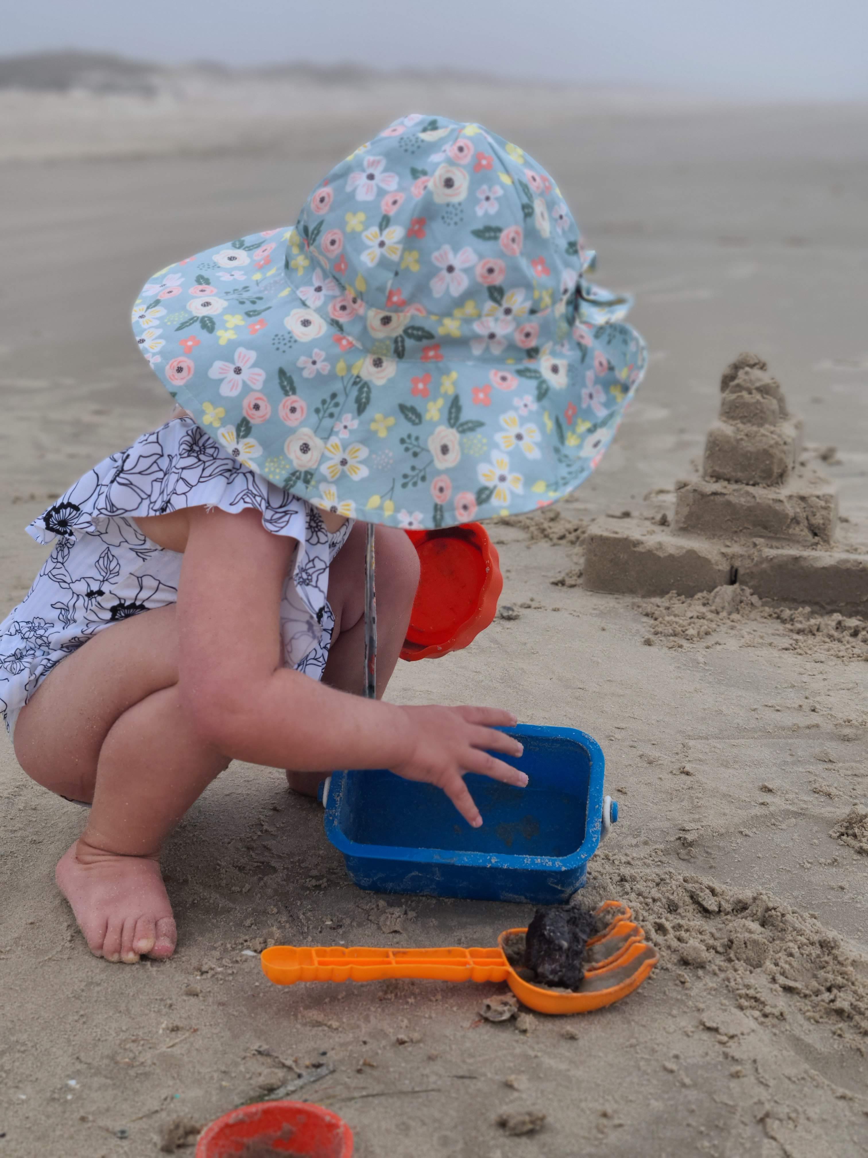 Little Bird was ecstatic the moment we got out of the truck, and for the first time, she was not intimidated to go near the water (cue mama’s anxiety!). Since she has always wanted to play in the sand, we quickly realized she definitely needed to be in something she could get wet, as we had also made the foolish mistake of not replenishing our backup clothes in the truck (almost 2 years in and you would think we were still rookies!). Luckily, we keep her swimsuit in the diaper bag, so after a quick wardrobe change, she was ready to go!
