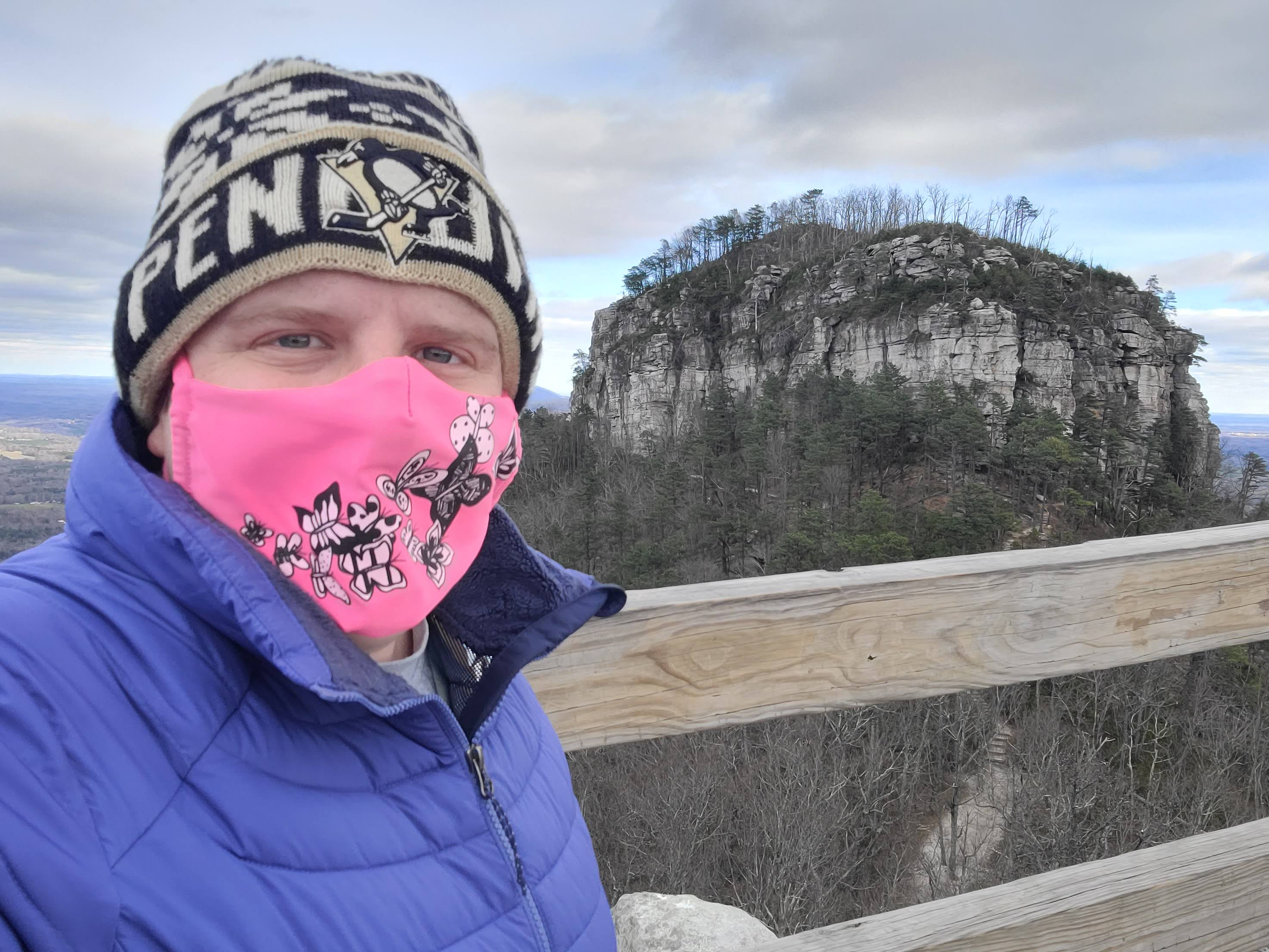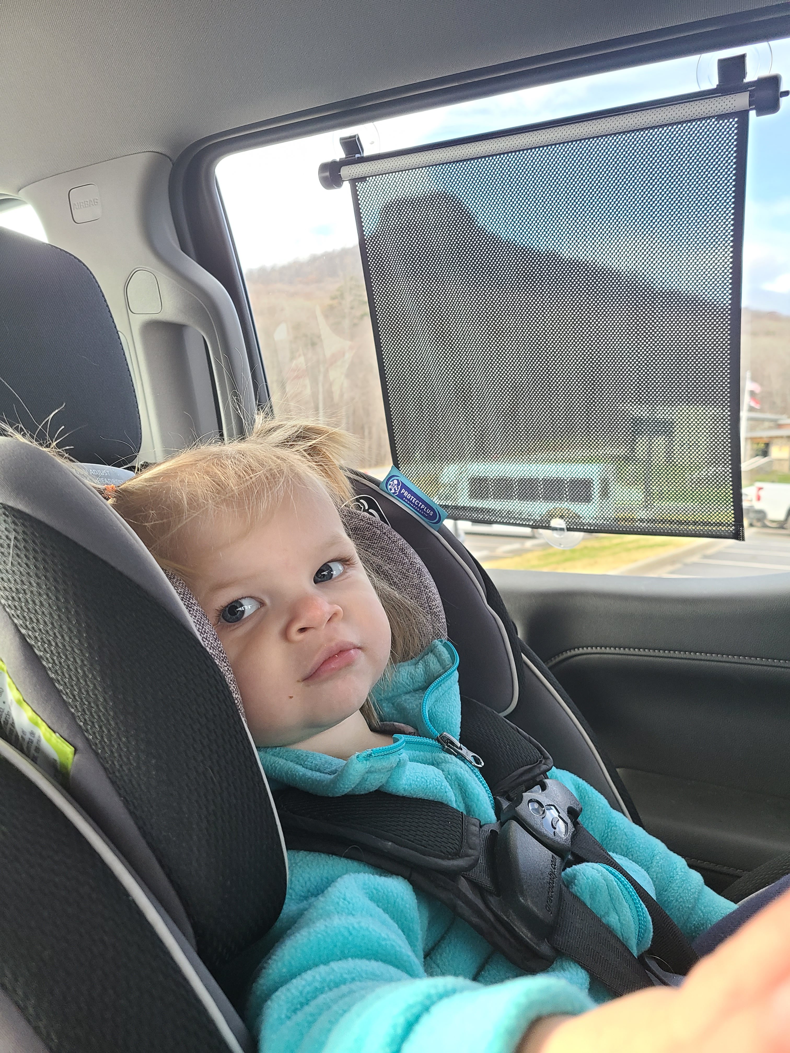 During our first visit to the Winston-Salem area in early December, we visited Pilot Mountain State Park. However, it was incredibly windy and cold, so Will and I took turns dashing up to the overlook while the other stayed in the warm truck with the girls. Thankfully, our second trip was on a much nicer day, and we were able to explore the park and show the area to Will’s sister and her partner who came to visit us.