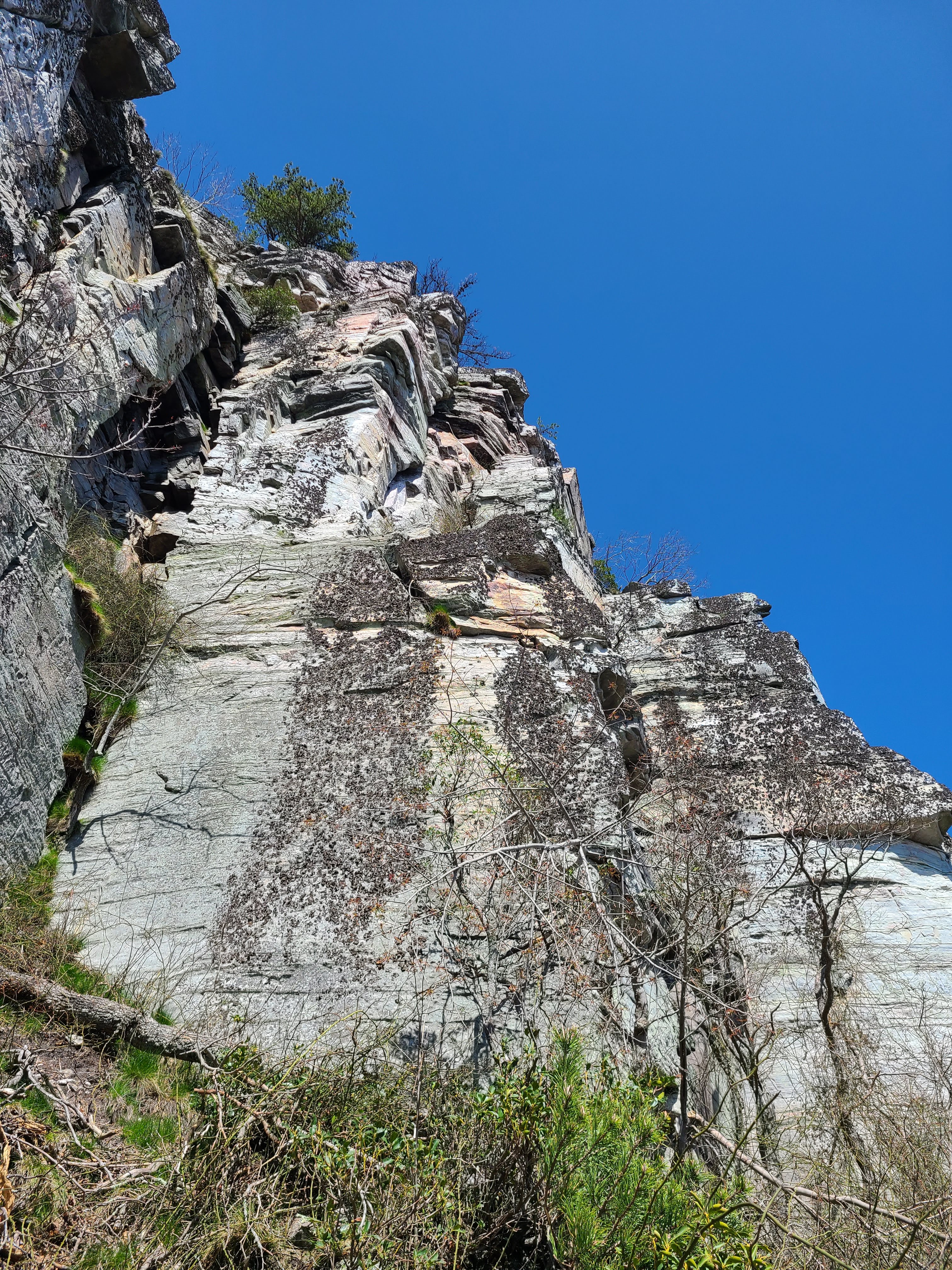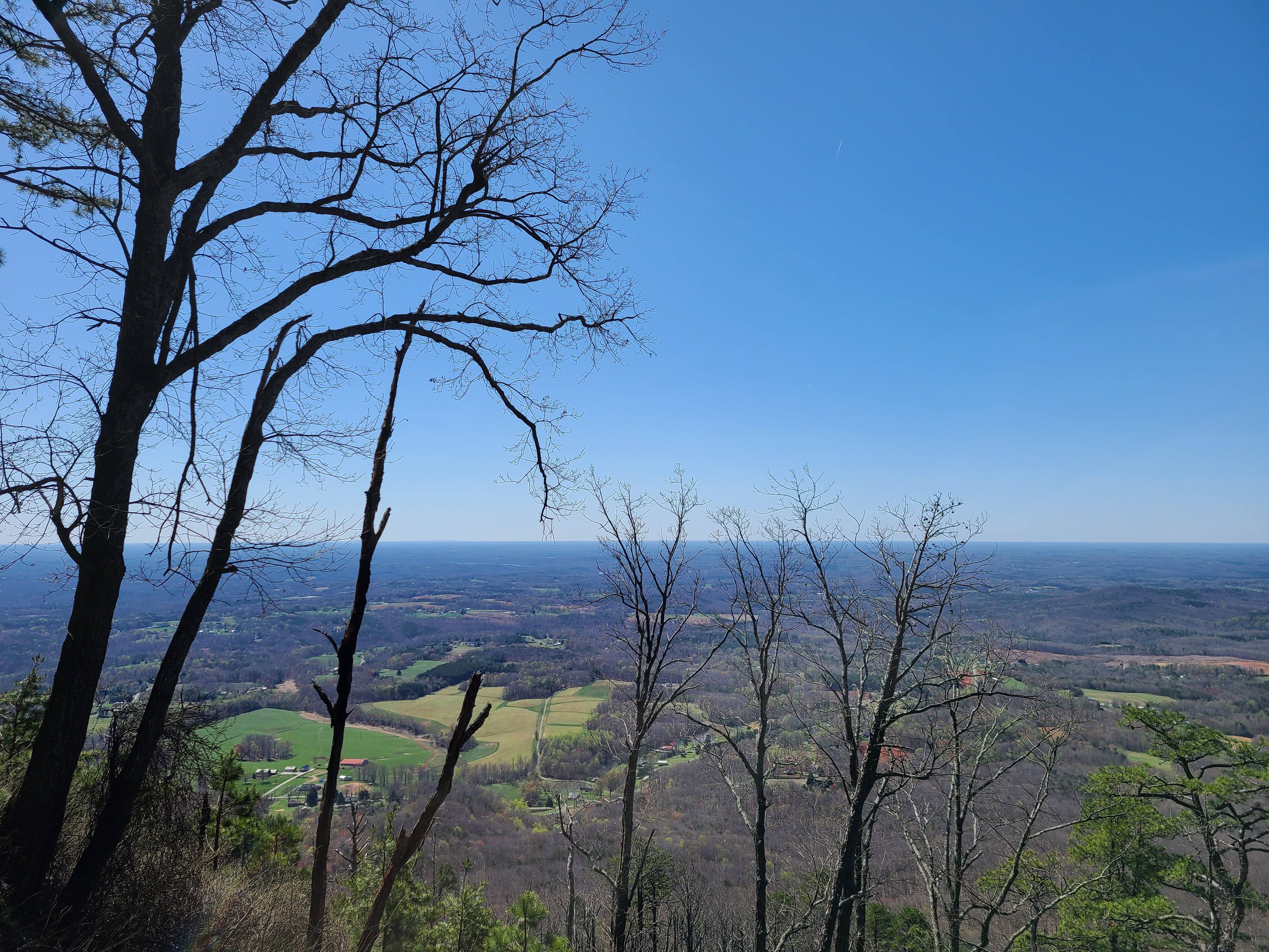 The views of both the mountain and surrounding vistas were breathtaking. For Little Bird who is obsessed with rocks, seeing the huge rocks making up the mountain was awe-inspiring. She did not know quite what to think. The rest of us were more drawn to the miles upon miles of landscape we could see from our elevated vantage point. Looking southeast, we could see the buildings of downtown Winston-Salem. Looking west, we could see the Smokey Mountains. It was so beautiful.