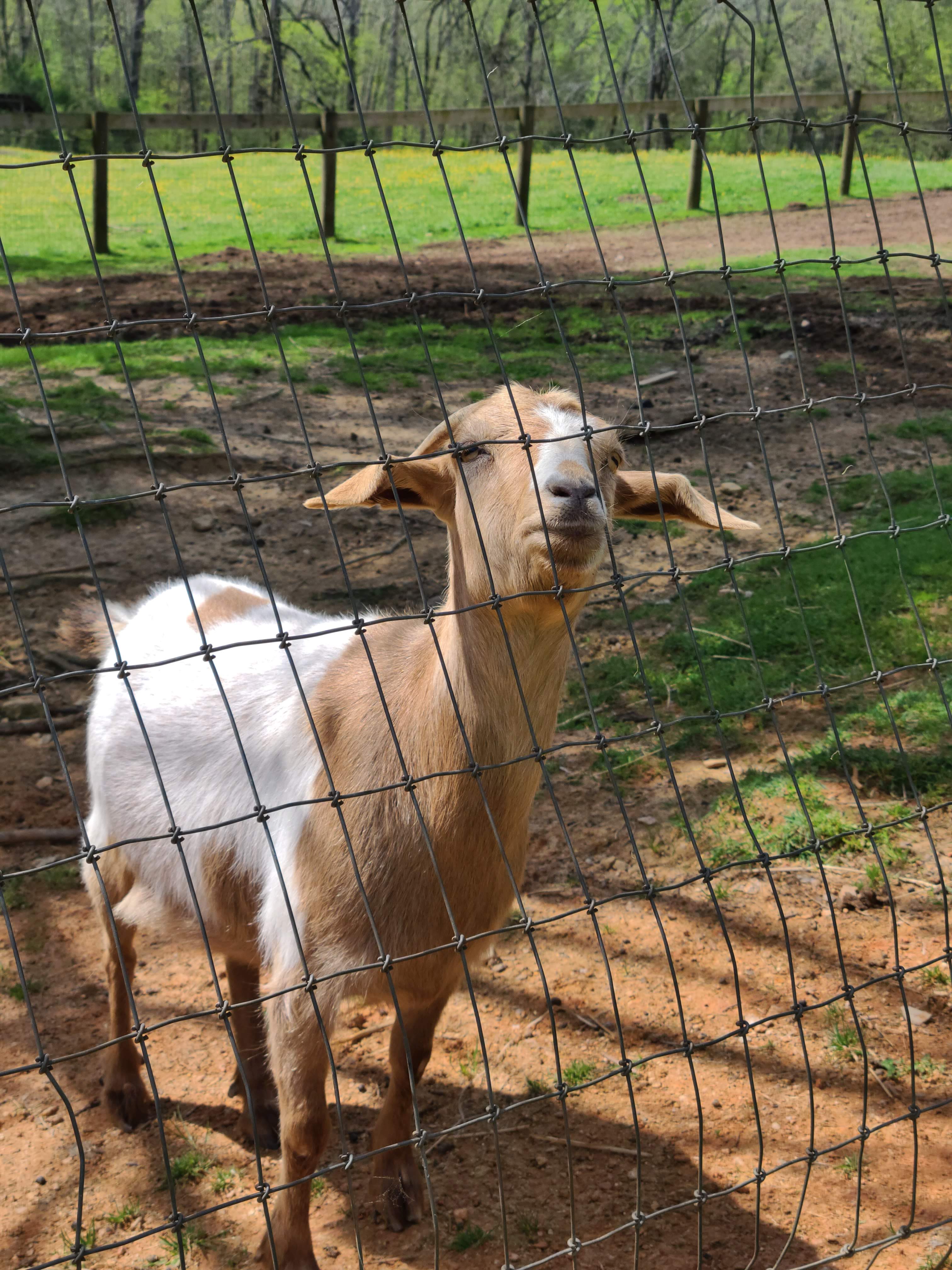 Once we wrapped up our hike, we made our way to the historic farm. We knew there were a few animals, and we knew Little Bird would love it. As we walked into the farm, we enjoyed reading about the history of the family who had settled on the land and looking at the farmhouse, barn, and other buildings around the property.