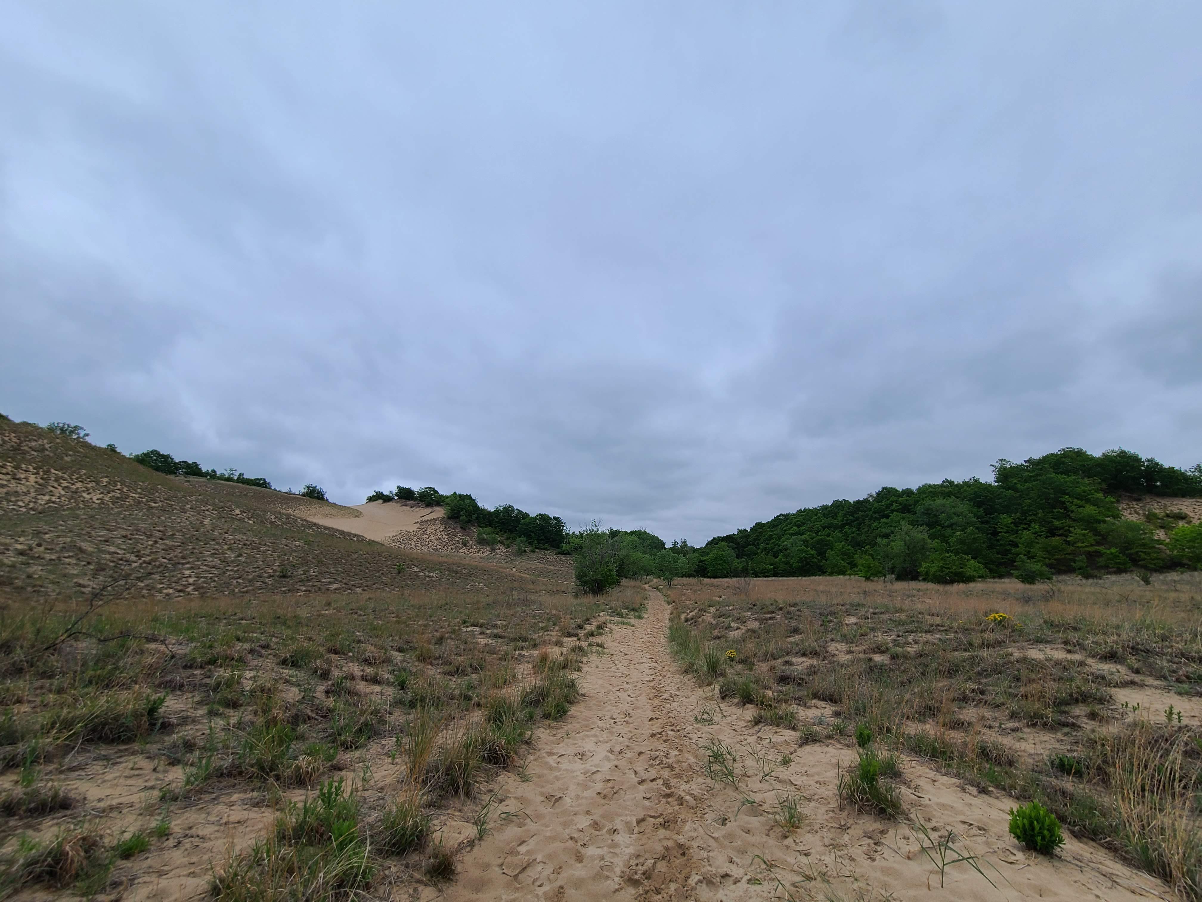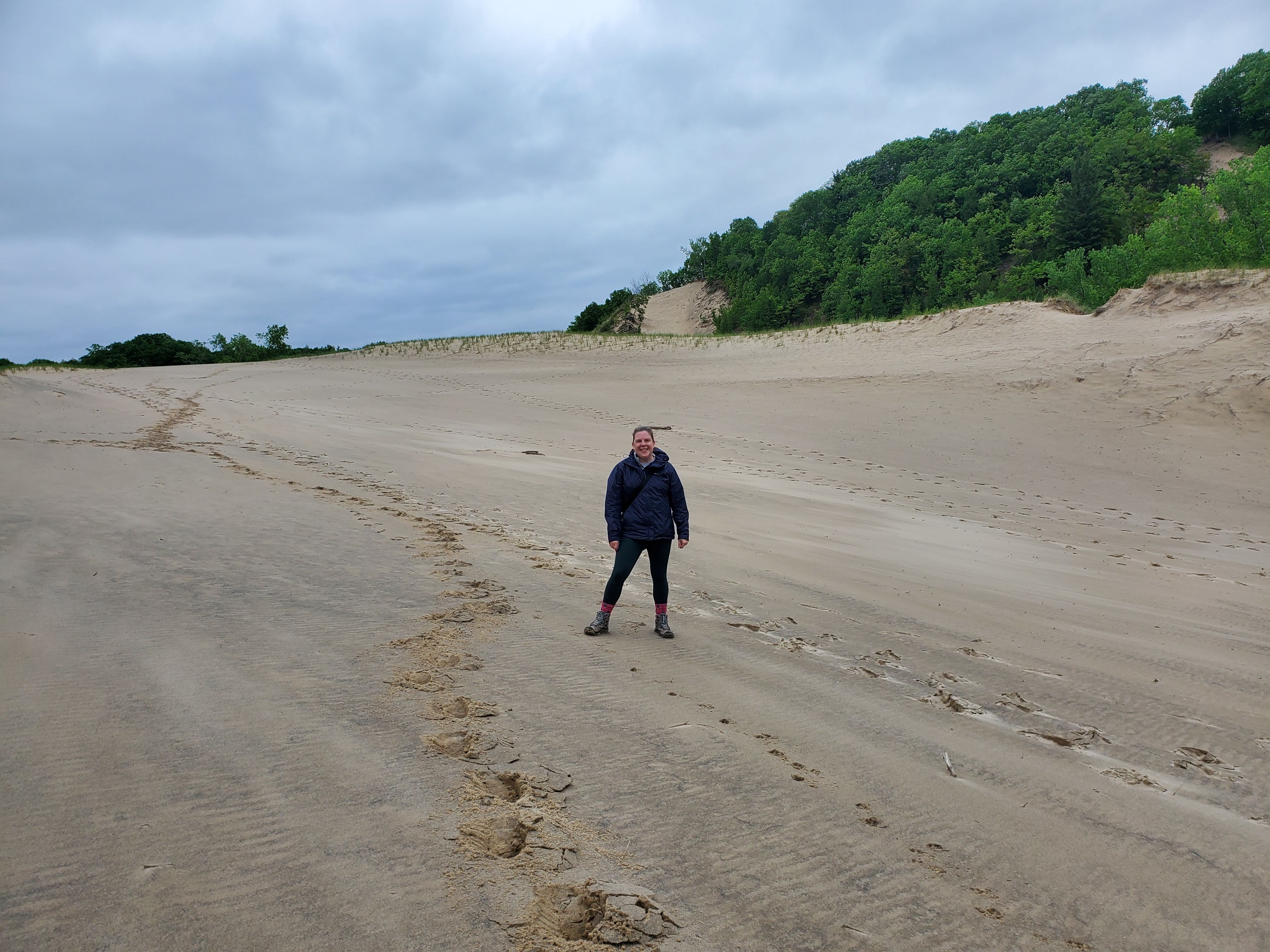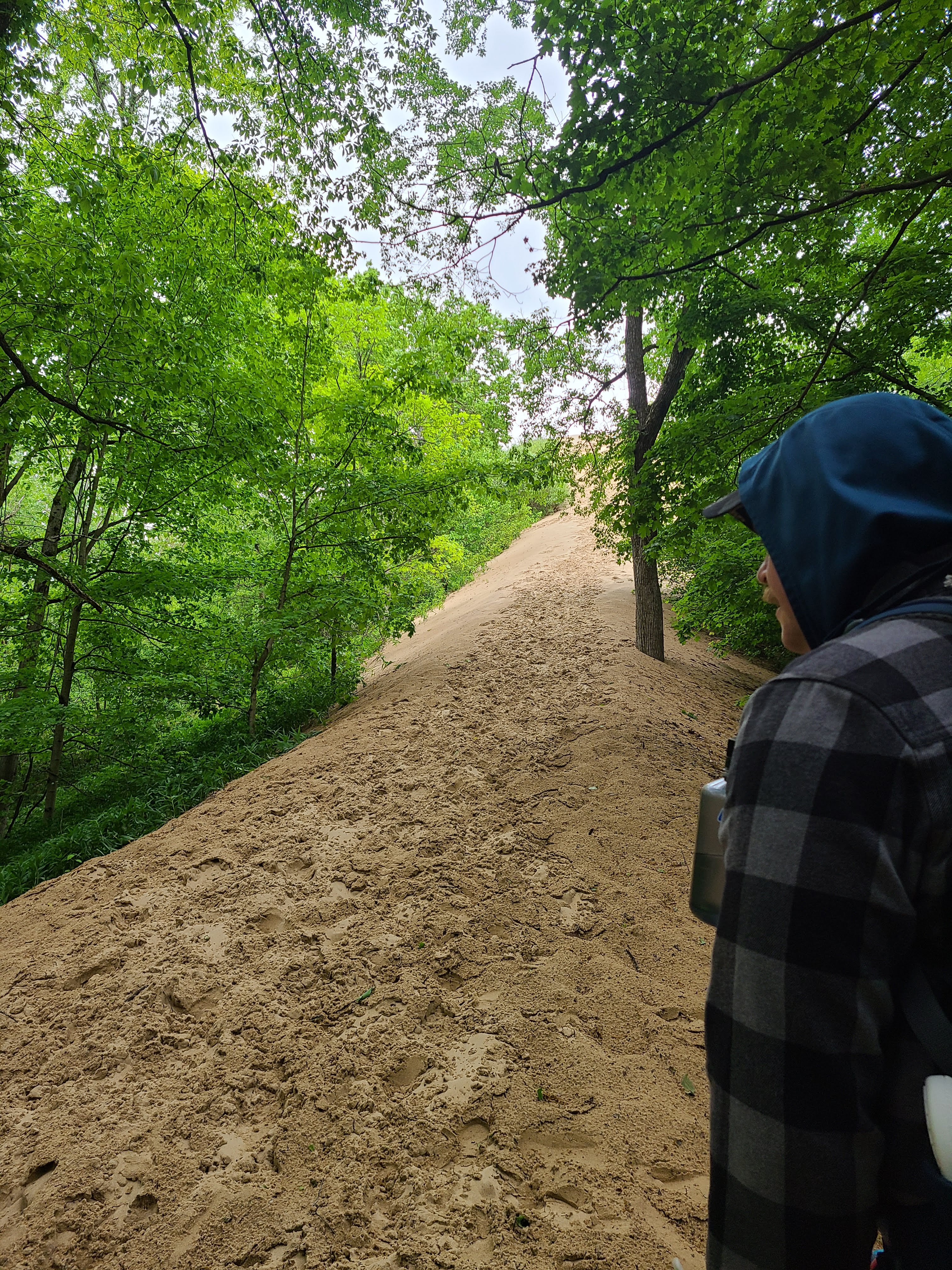 We set off on the trail not really knowing what to expect. Although we were walking through a green and thick forest, the trail was sand…like several inches deep sand. It was an interesting juxtaposition that Will and I both continually commented on as it was a very unique experience. At several points on the trail, we could see huge sand dunes and catch glimpses of Lake Michigan.