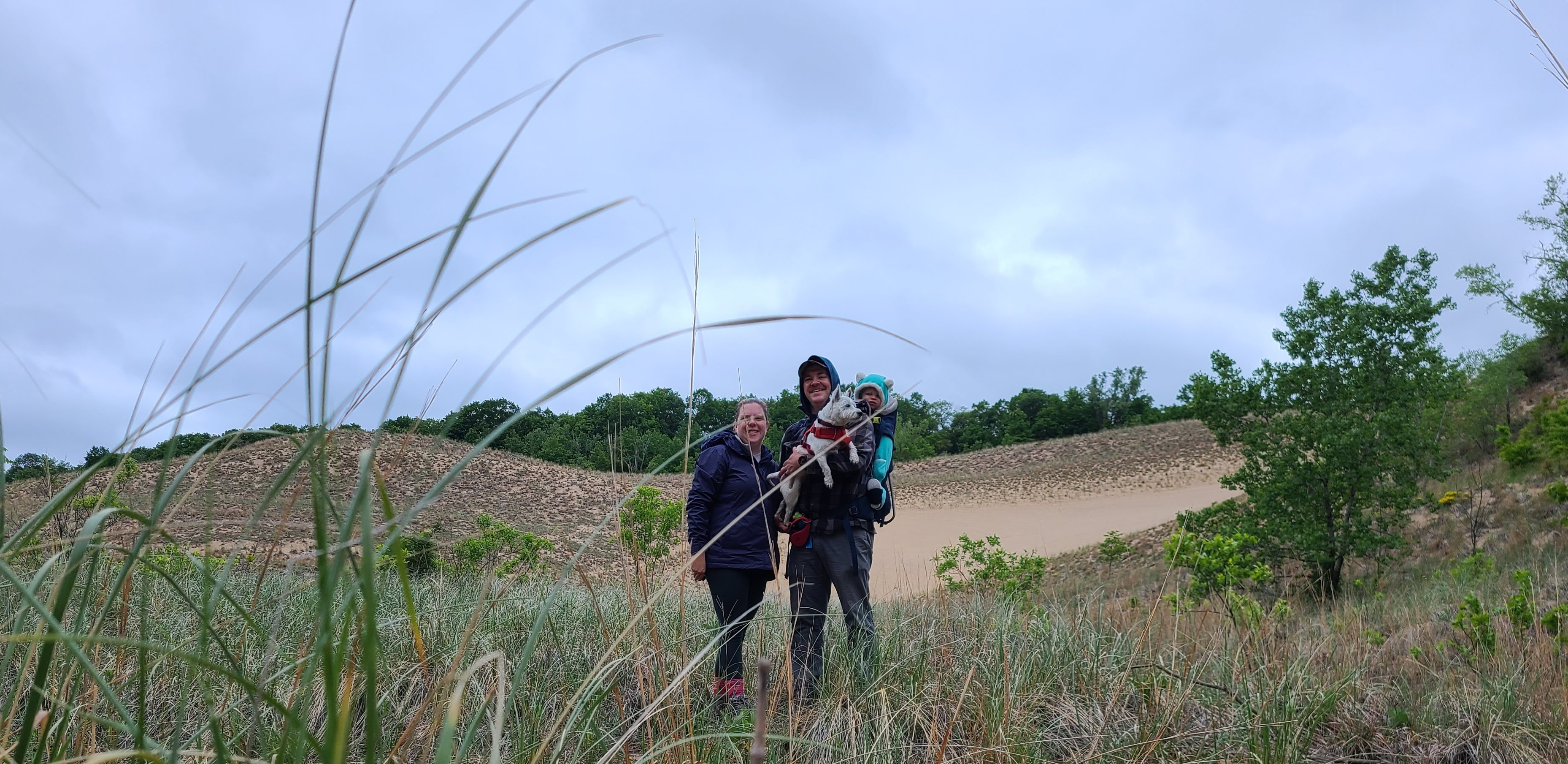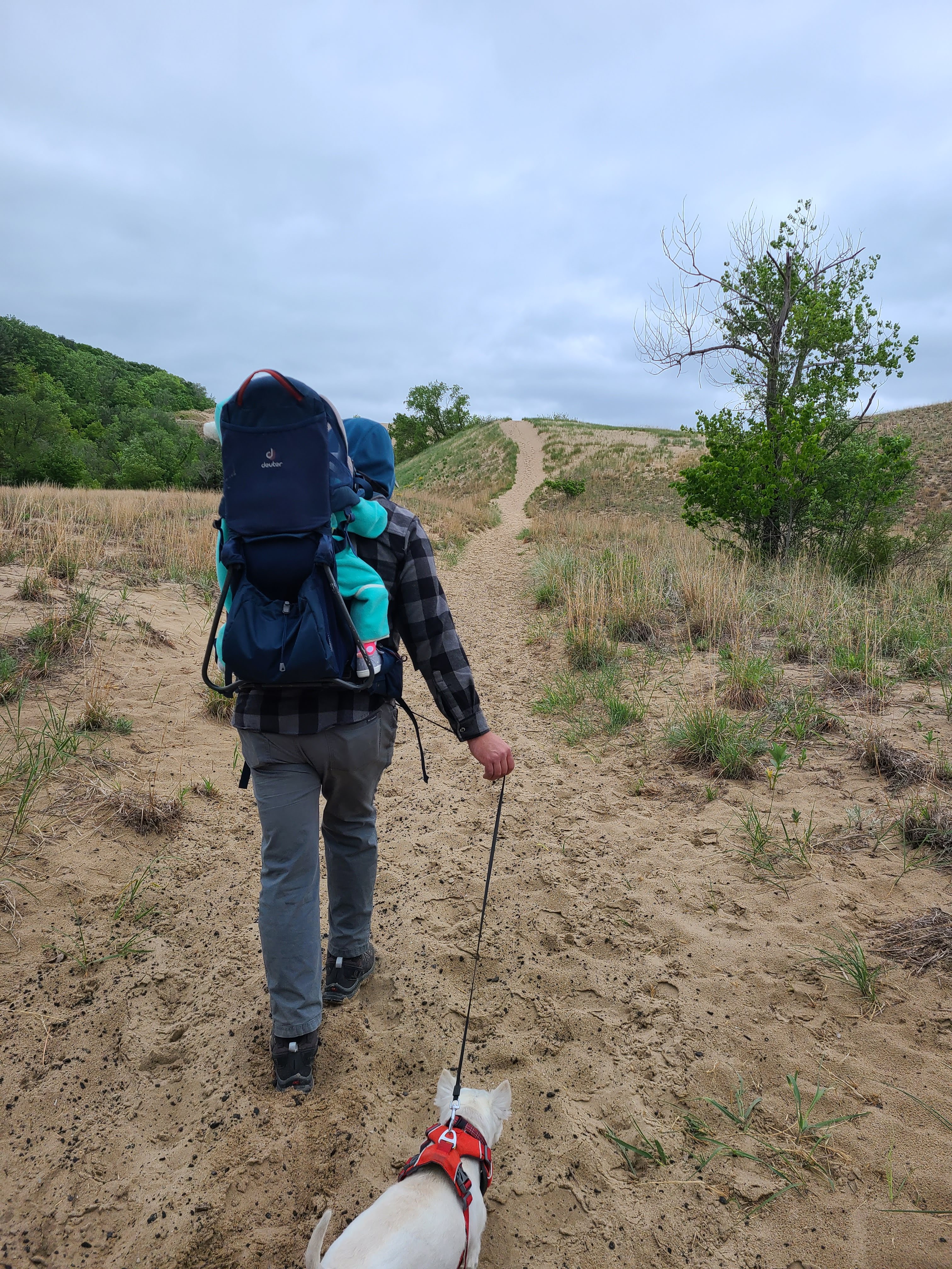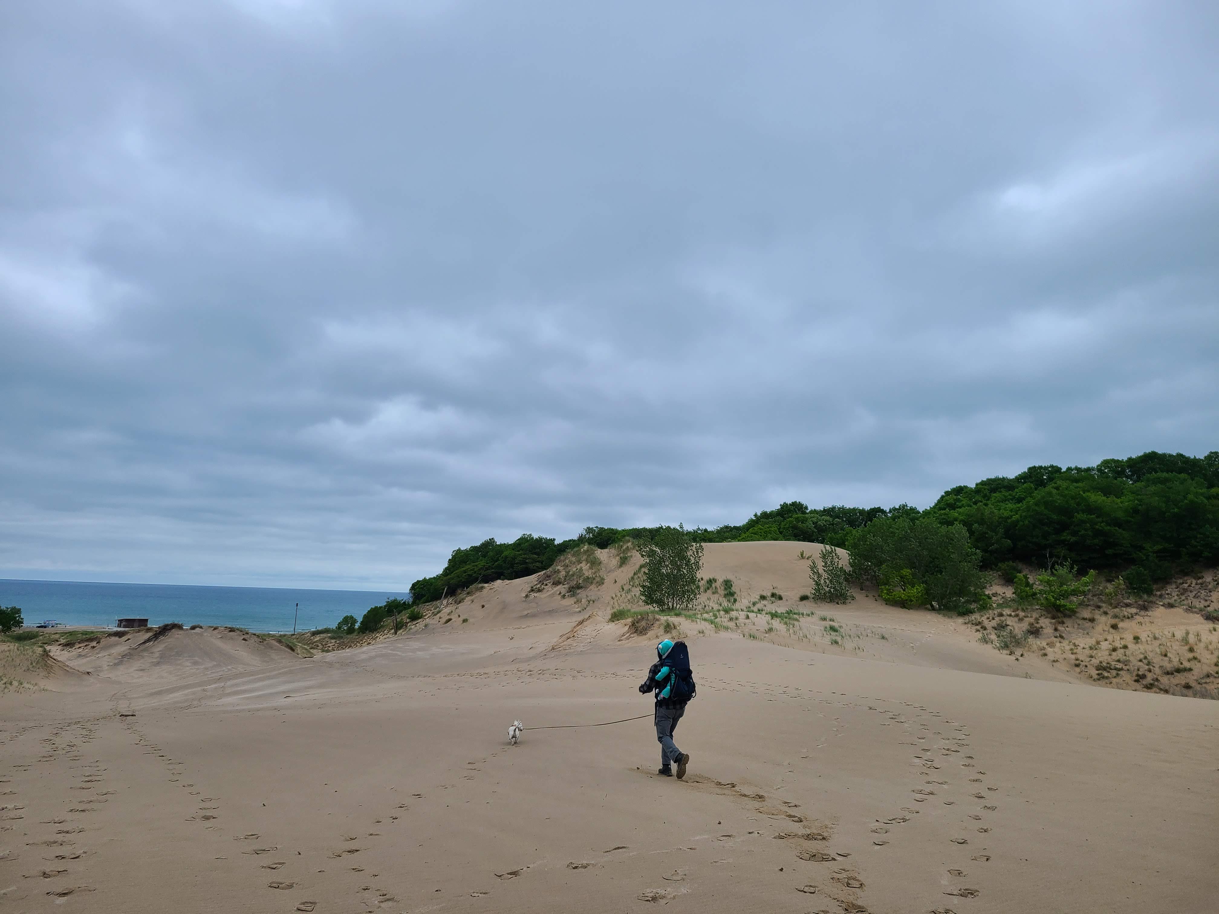 We set off on the trail not really knowing what to expect. Although we were walking through a green and thick forest, the trail was sand…like several inches deep sand. It was an interesting juxtaposition that Will and I both continually commented on as it was a very unique experience. At several points on the trail, we could see huge sand dunes and catch glimpses of Lake Michigan.