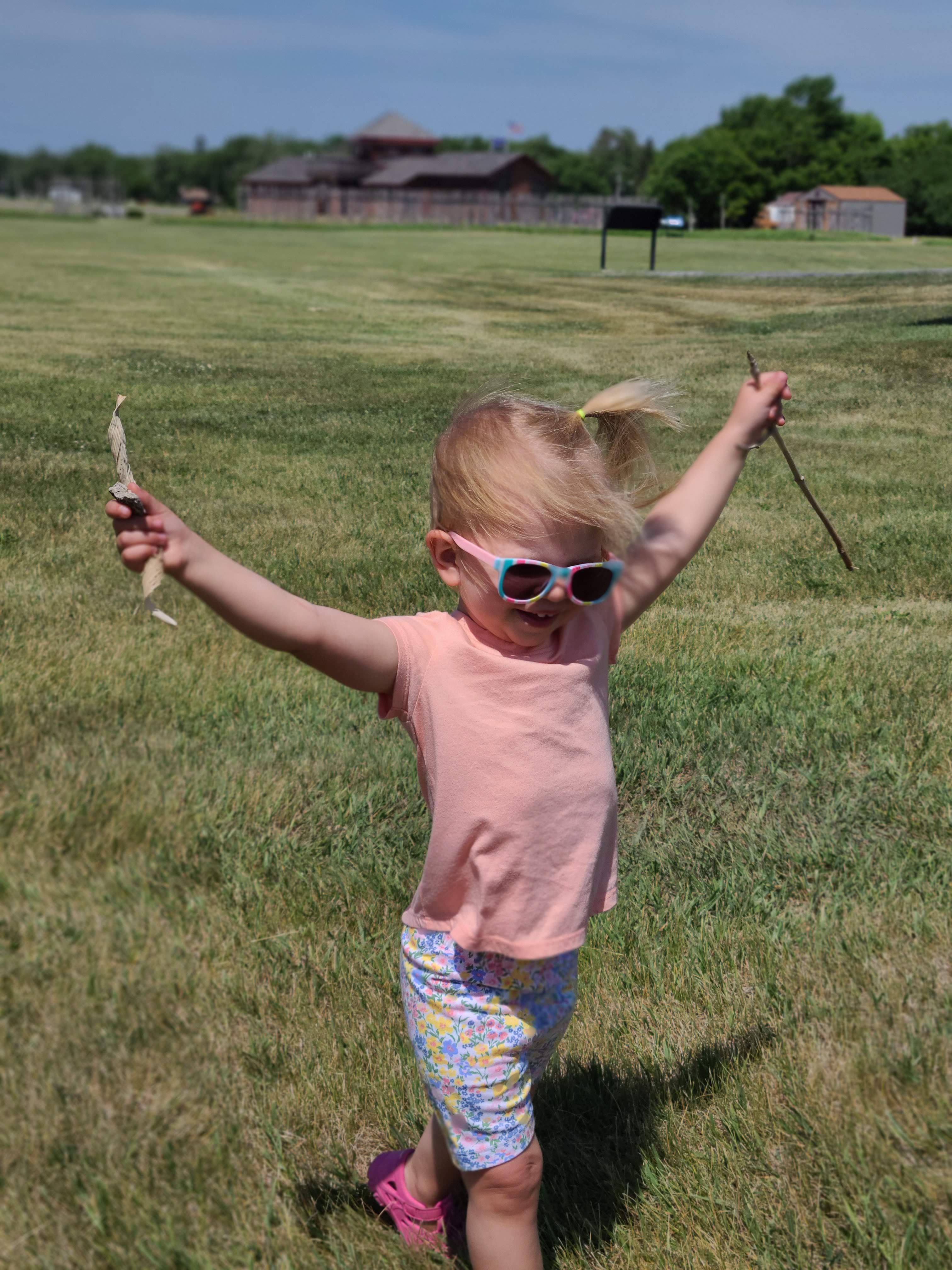 Fort Abercrombie is on the banks of the Red River just inside the North Dakota border. The fort has a visitor’s center and an outdoor area to explore. While the original buildings are no longer standing, the field is landscaped in a way where you can see where they once stood. The footprints of the original buildings are set off with corner posts, and the grass within these posts is allowed to grow tall. All the other grass in the field is mowed. Once we understood what the tall grasses meant, we stood back and were able to envision what the area looked like once upon a time.