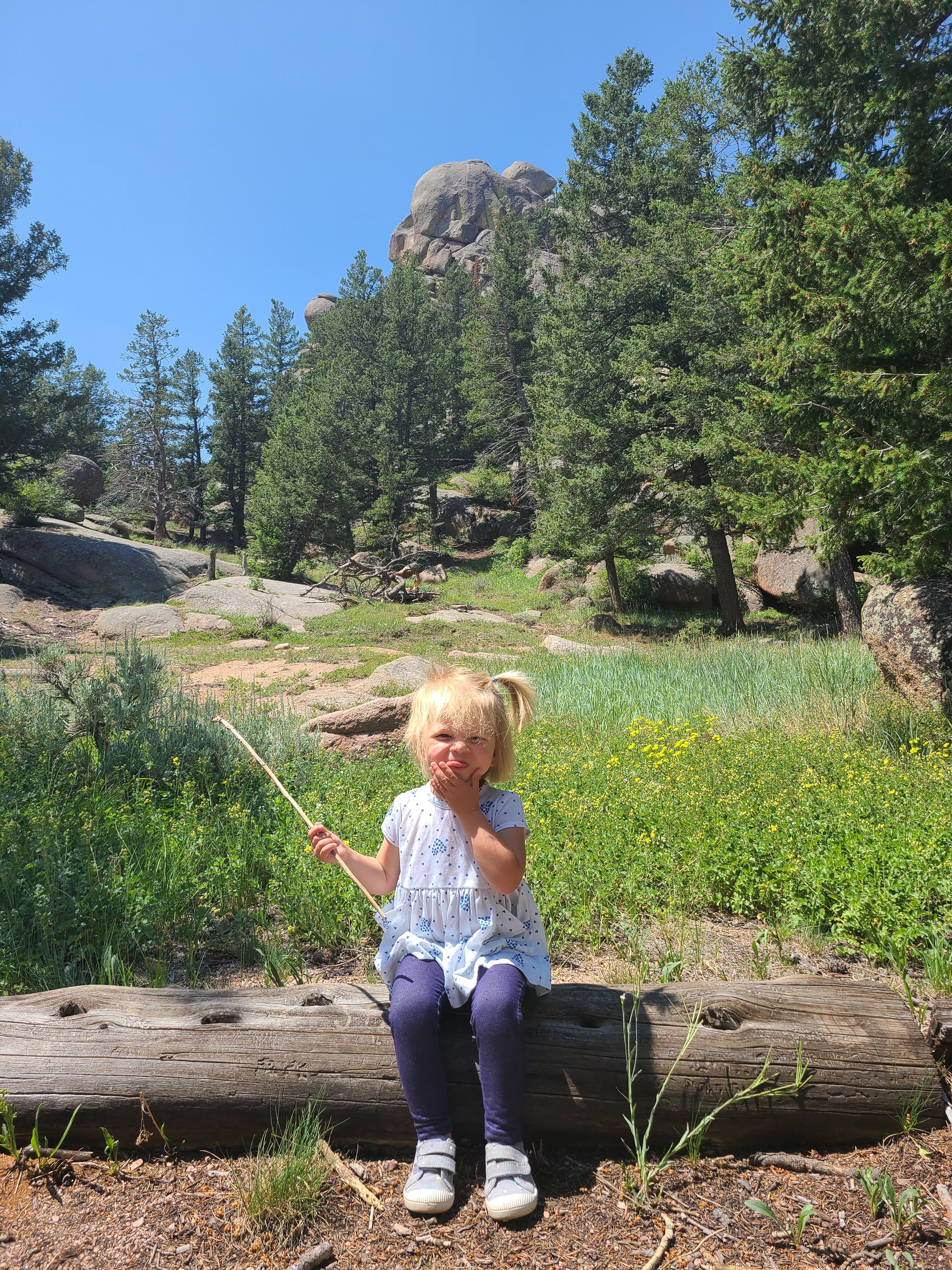 The rocks at Vedauwoo did not disappoint, but the temperatures were toasty, and we kept our hiking to a short loop. This is definitely a gem I was unfamiliar with and would love to explore further. The rocks are a granite conglomerate, making them nice and grippy and easy to climb over. This delighted Bird, and she scrambled over every rock she could, loving every minute.