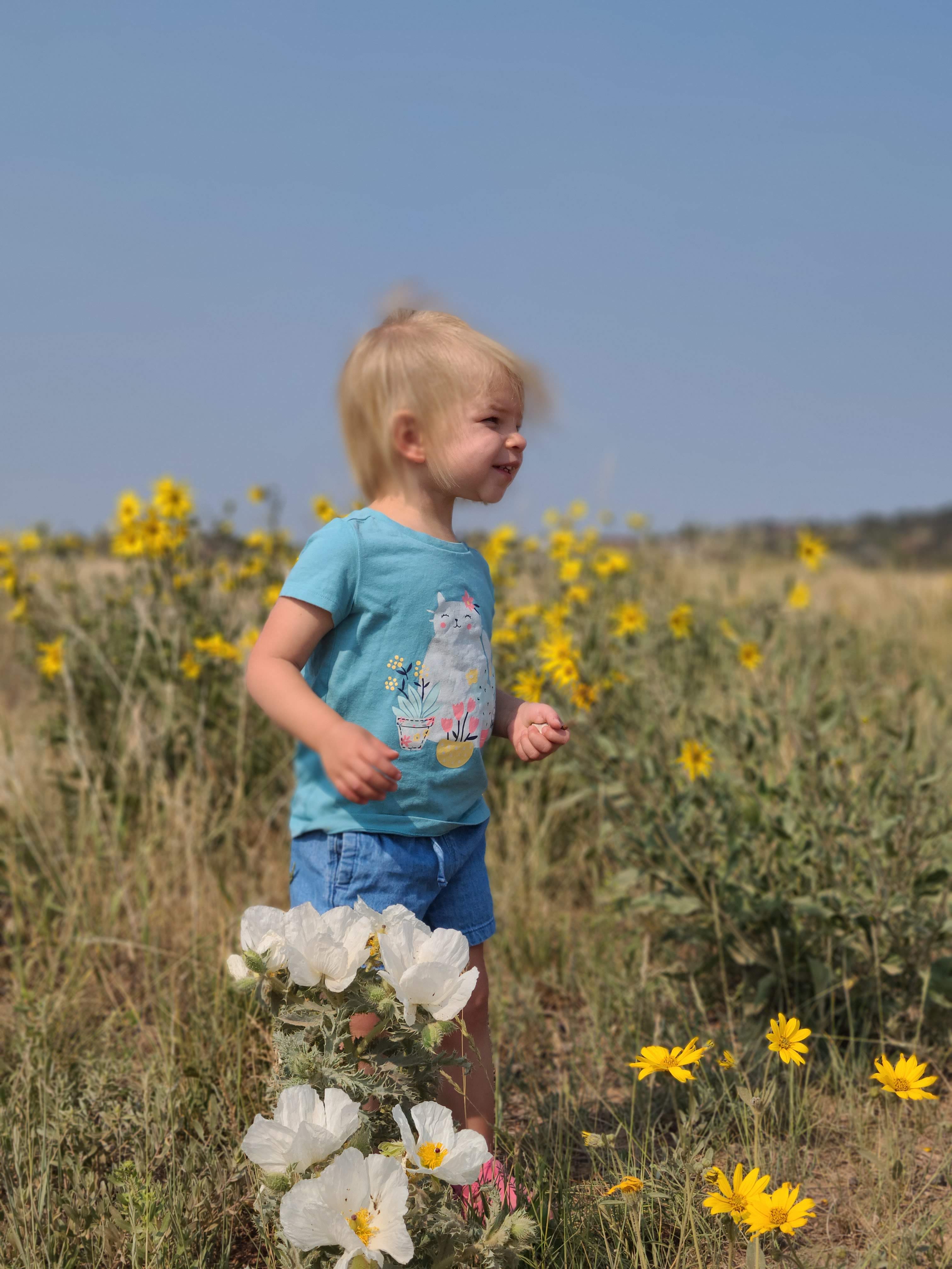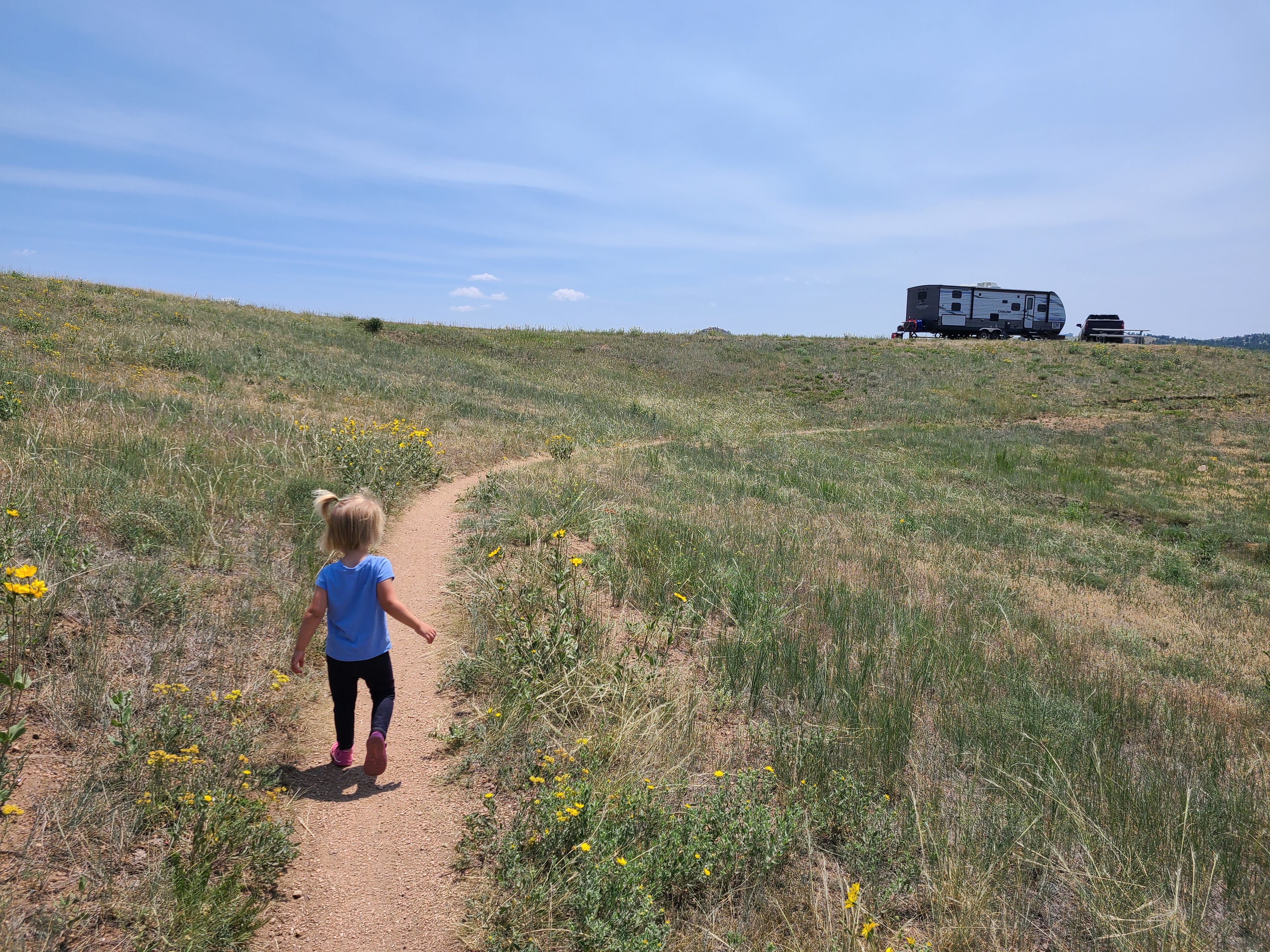 We have been so lucky to experience wildflowers blooming all spring and summer everywhere we go, providing incredible color along all of the trails. The trails at the campground were no exception, and Bird and I had several walks among the wildflowers that were absolutely amazing. Watching her walk the trails, stopping to count the flowers or point out different colors as the summer sun casted the perfect glow on her was something I will never forget.