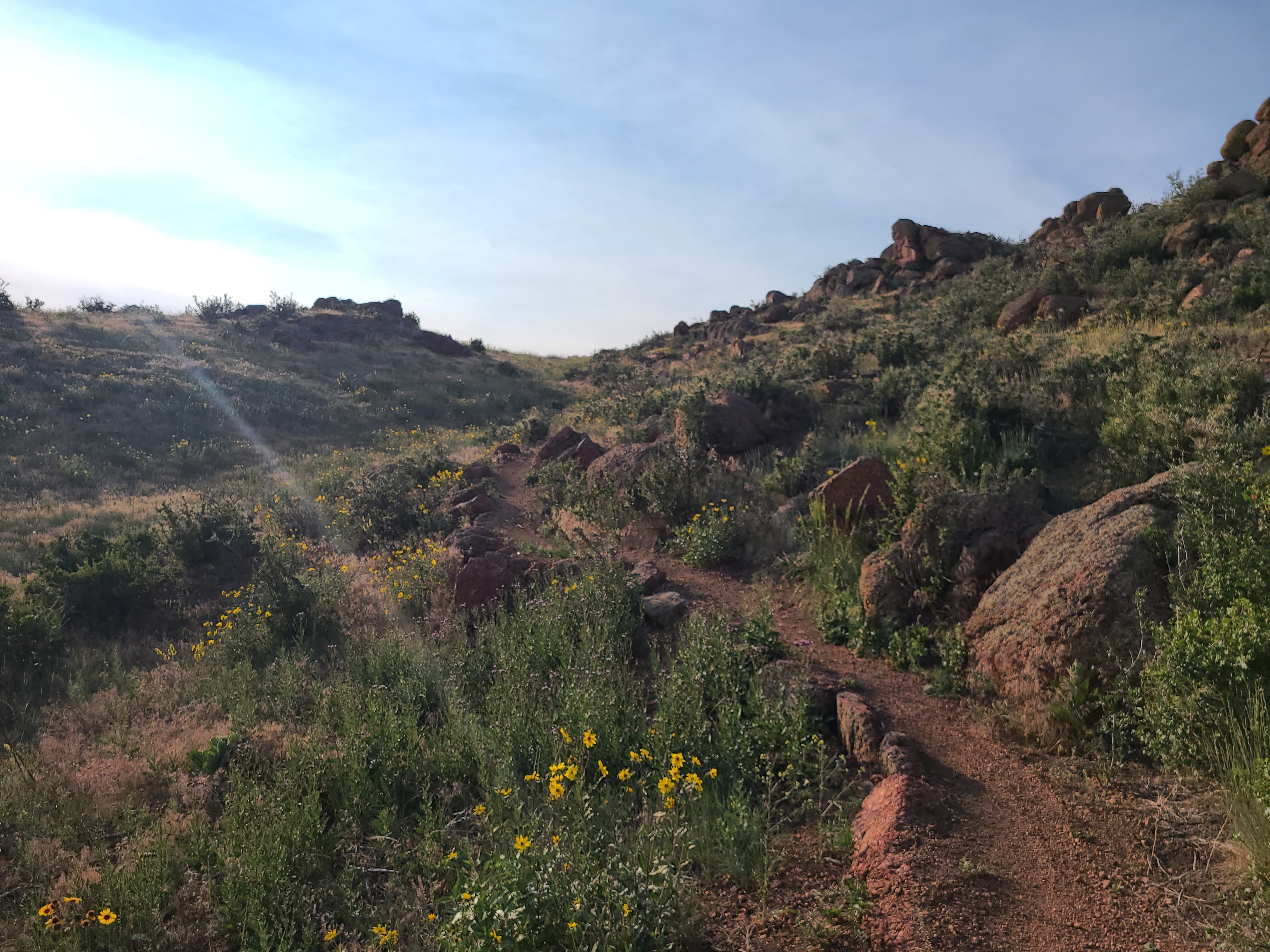 On our final night at the state park, we took a hike after dinner once the heat of the day finally passed. We left from the camper, which is always fun, and made our way about 4 miles along trails within the park. While the trails were a little rutted in places from all the mountain bikers, they were in decent condition, and it was a pretty easy hike (though still very warm). We walked along a canyon, saw some amazing views of the grassy hills we could see outside our window, and witnessed a large deer bound across the trail and down to the river below.