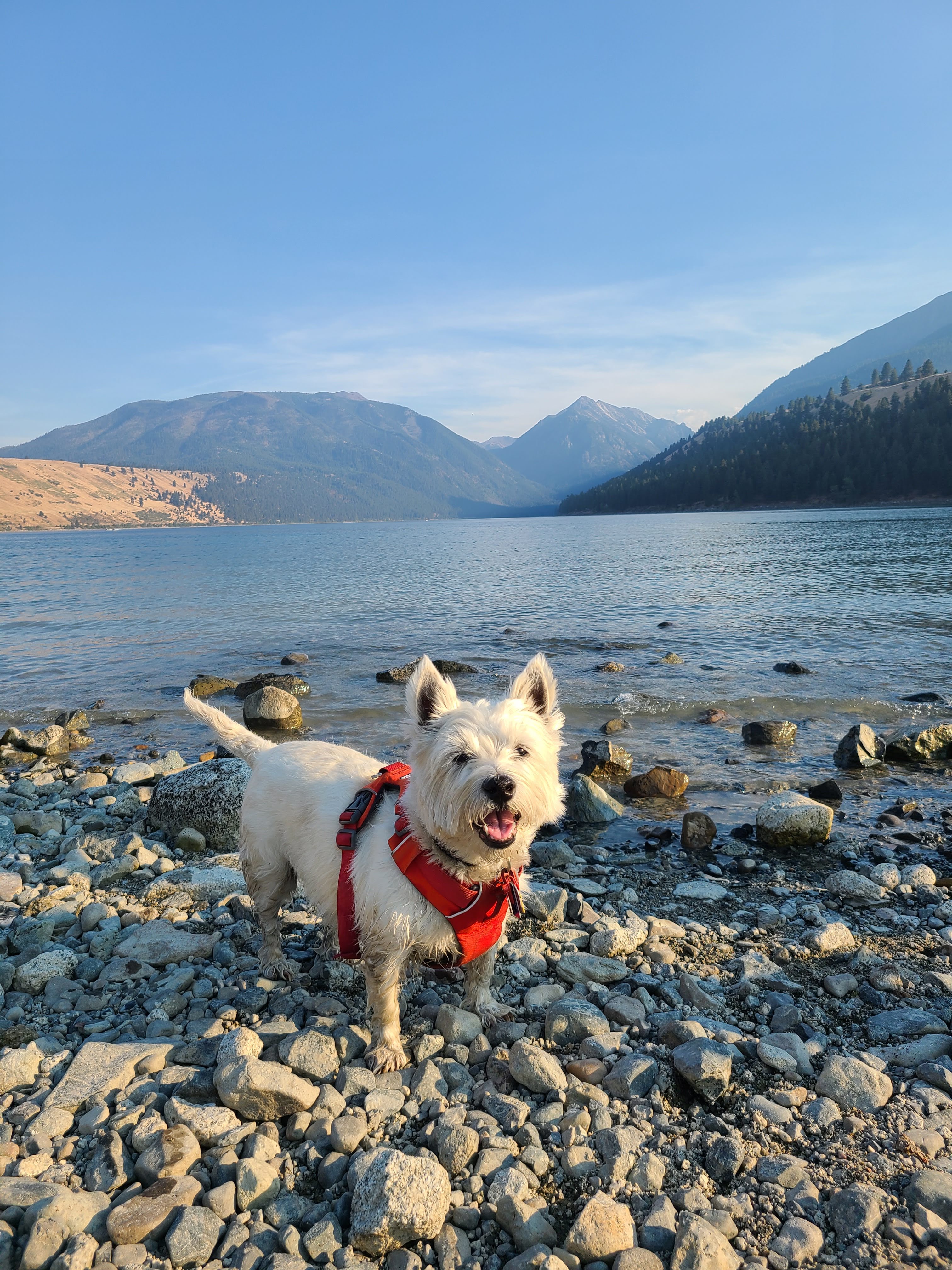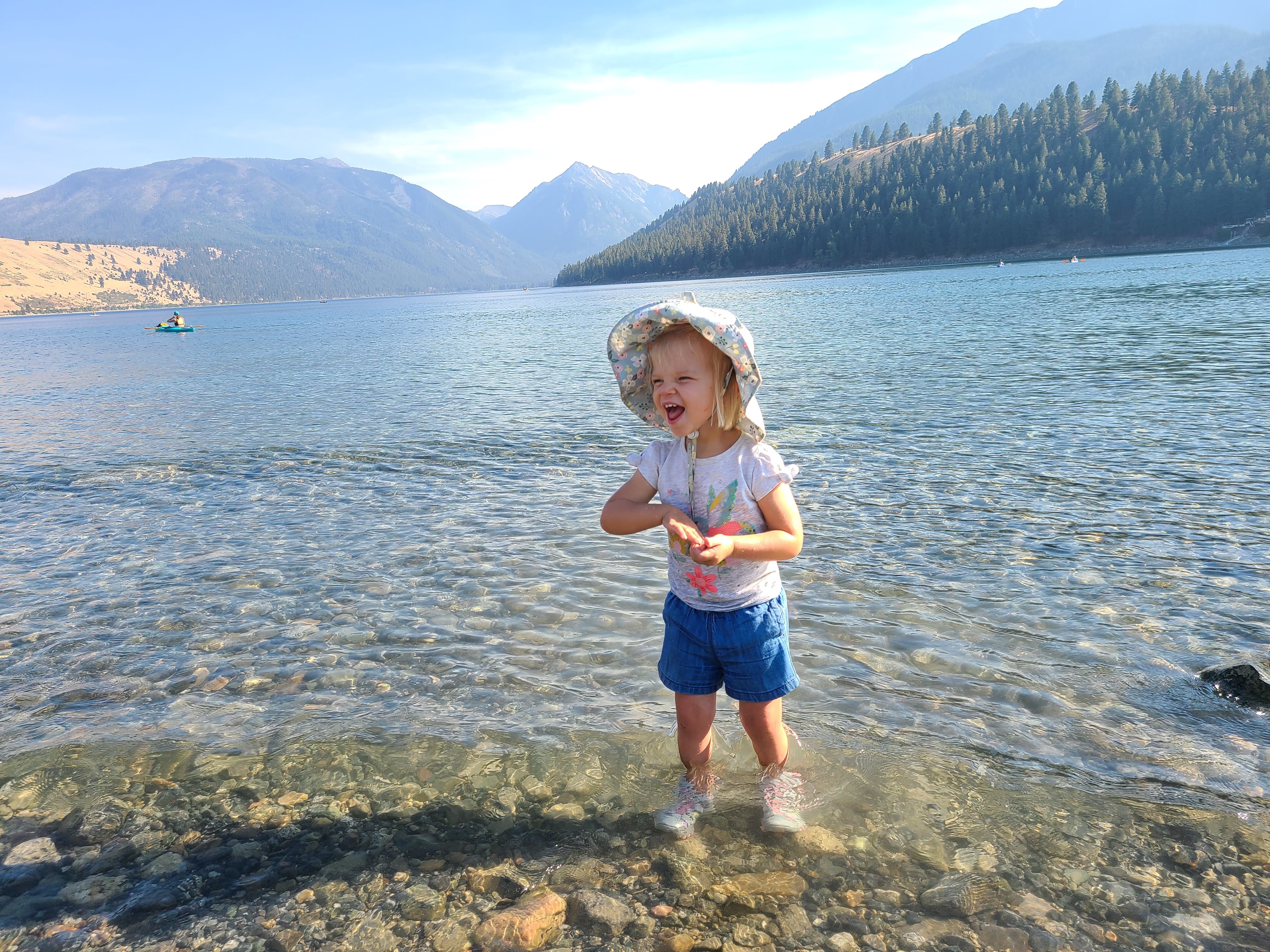 The lake was absolutely gorgeous, and the scene with it nestled at the base of the mountains was truly magical. The water was just the right amount of chilly and as clear as clear could be. We only allow Bird to wade in to where the water is a few inches deep, but I wanted nothing more than to dive in headfirst and enjoy a nice swim.