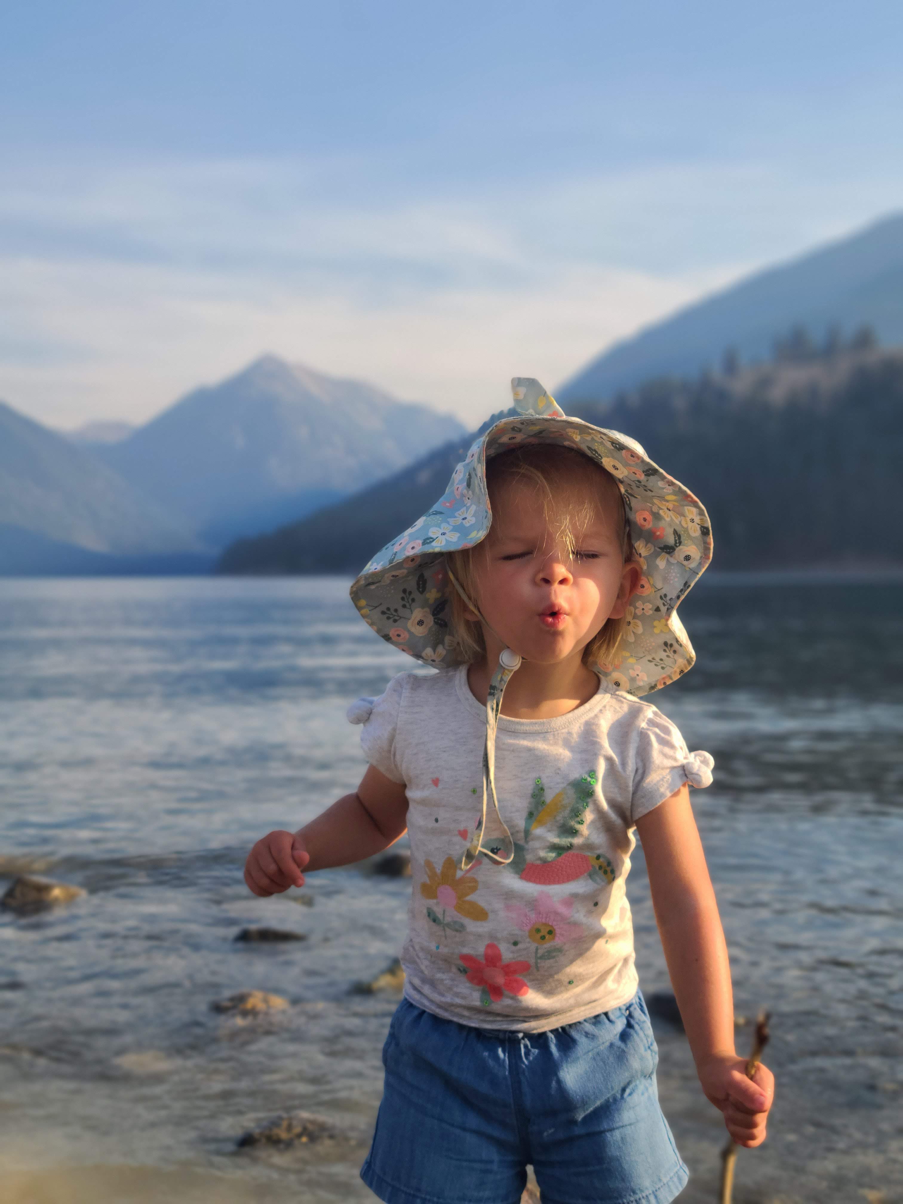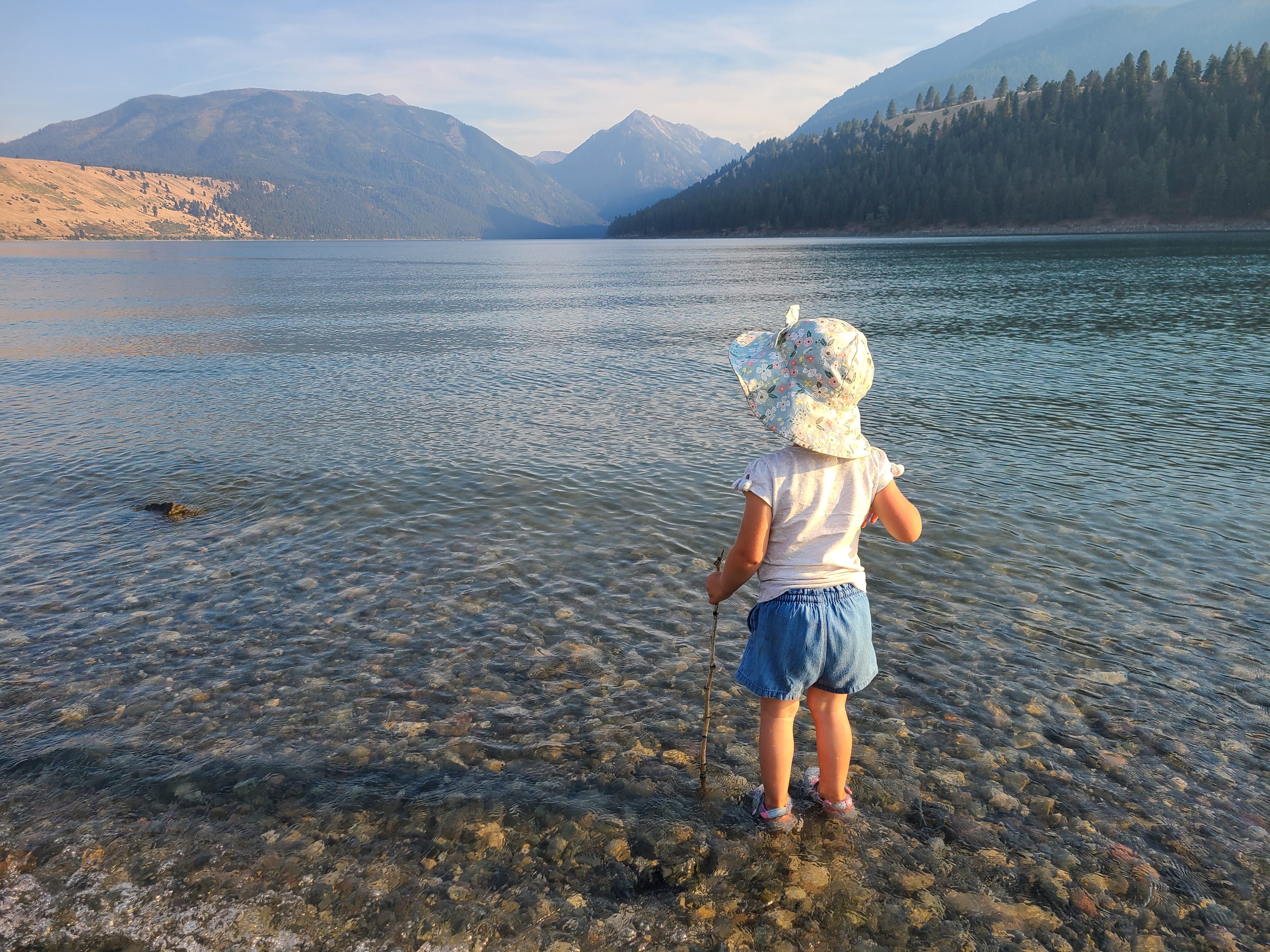 We made our way back to the shade for a picnic dinner, then we all headed down to the water. Daisy can be funny around water, and she was just not having it on the rocky beach, so since she was ready to go and it was getting late anyway, we reluctantly packed it in for the day and turned the truck toward home.