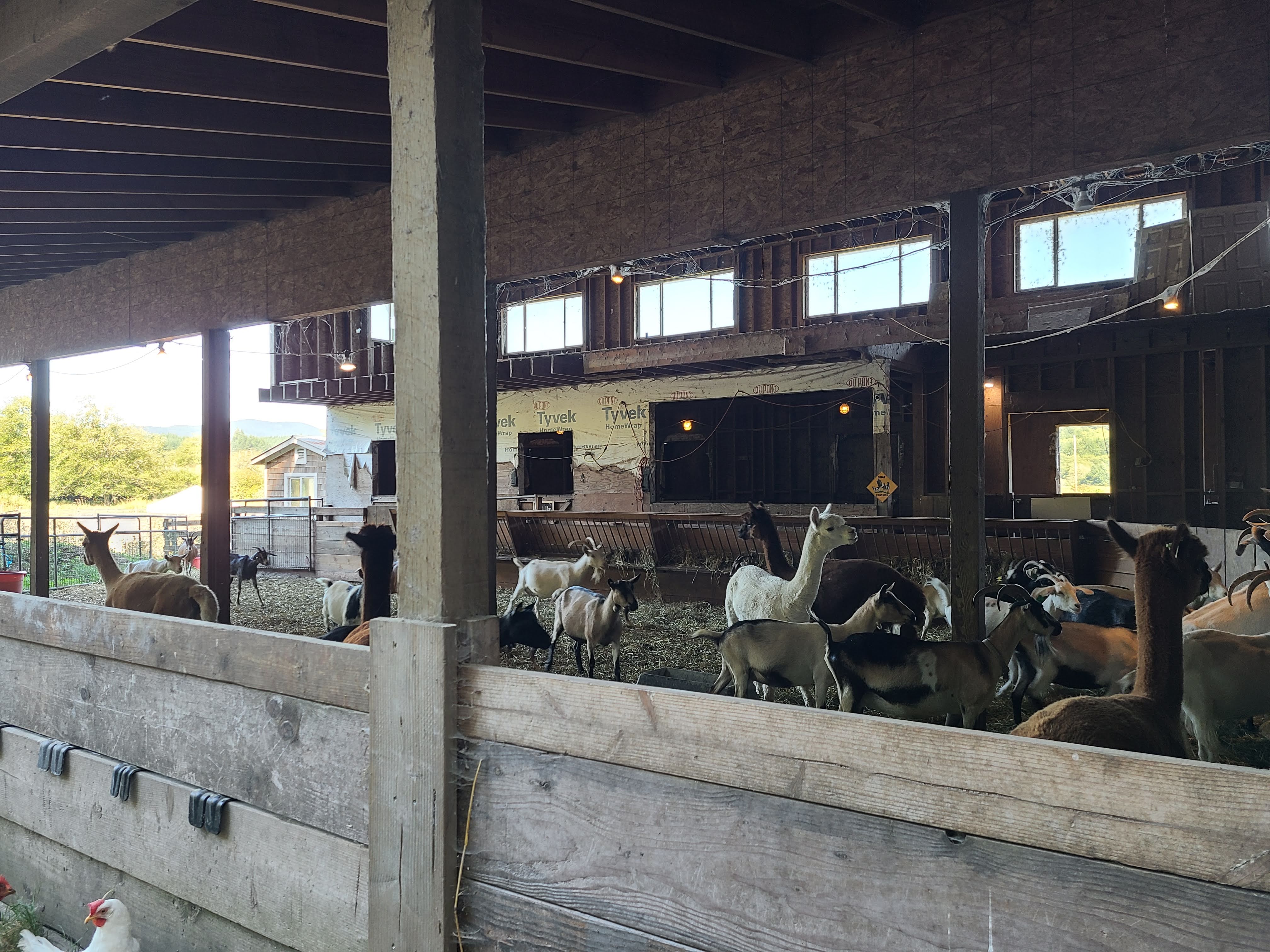 Shortly after we returned to the camper, the owner of the farm pulled up the driveway and stopped to chat with us. She welcomed us and told us to head on down to the main area where the goats are kept as they would be getting the babies out and then would be milking the goats. Of course, we were in, so we donned our boots and made our way down to see all the animals.