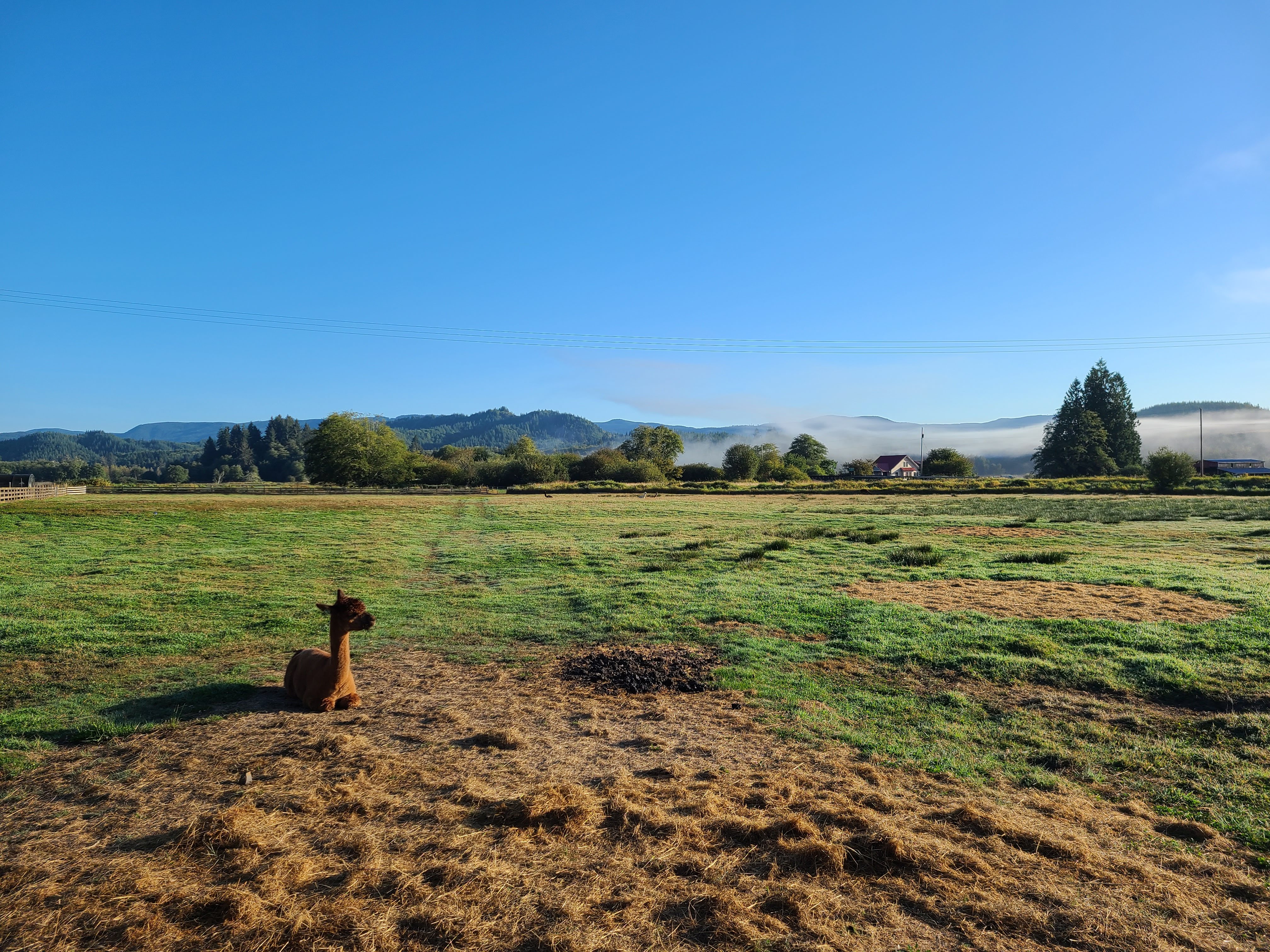 I woke up early the next morning before anyone else and made my way outside with some coffee to enjoy the brisk morning air. I watched fog burn off the adjacent properties as the sun came up and made small talk with one of the alpaca hanging out in the field nearby. It was such a pleasant way to start the day.