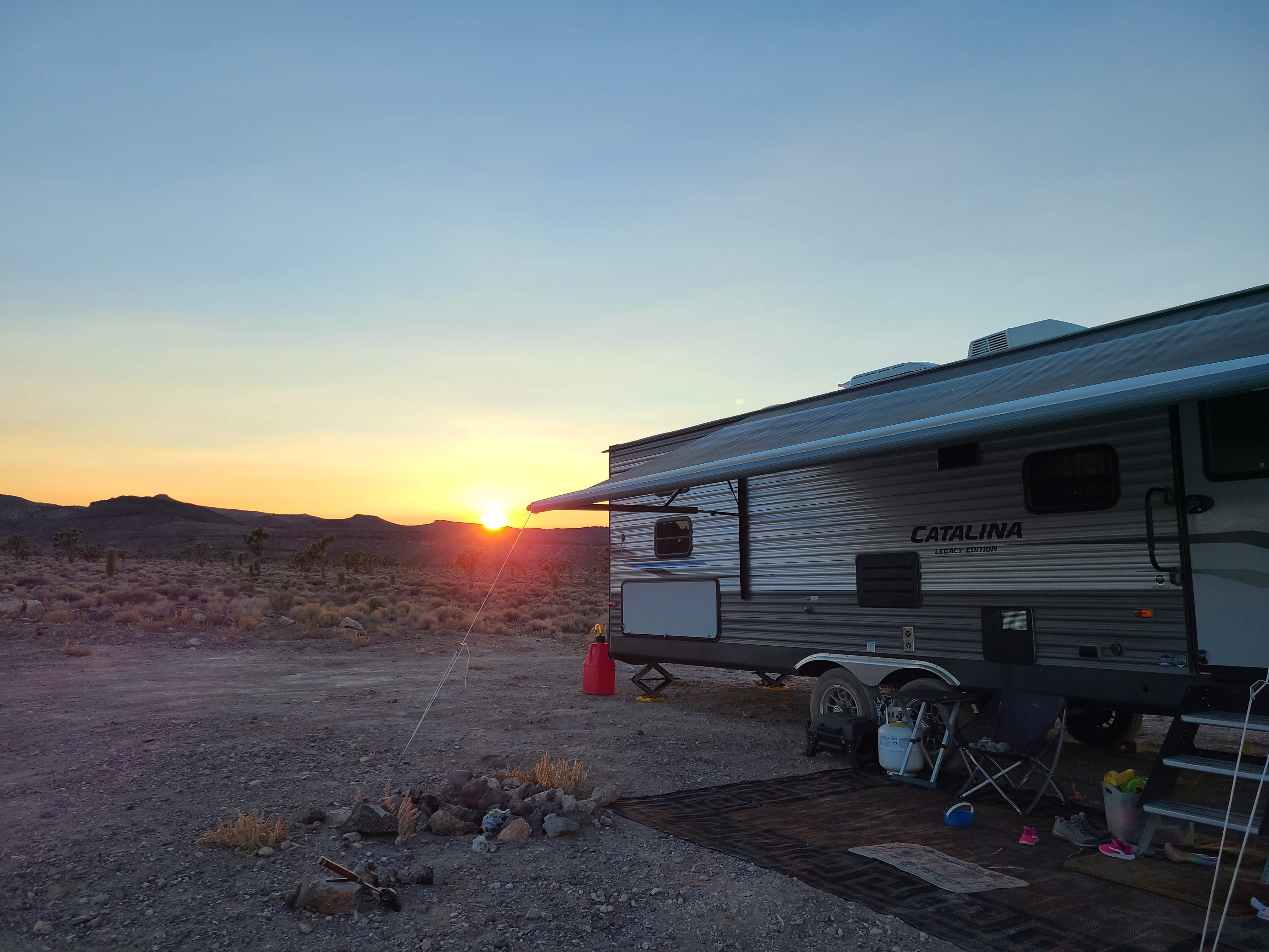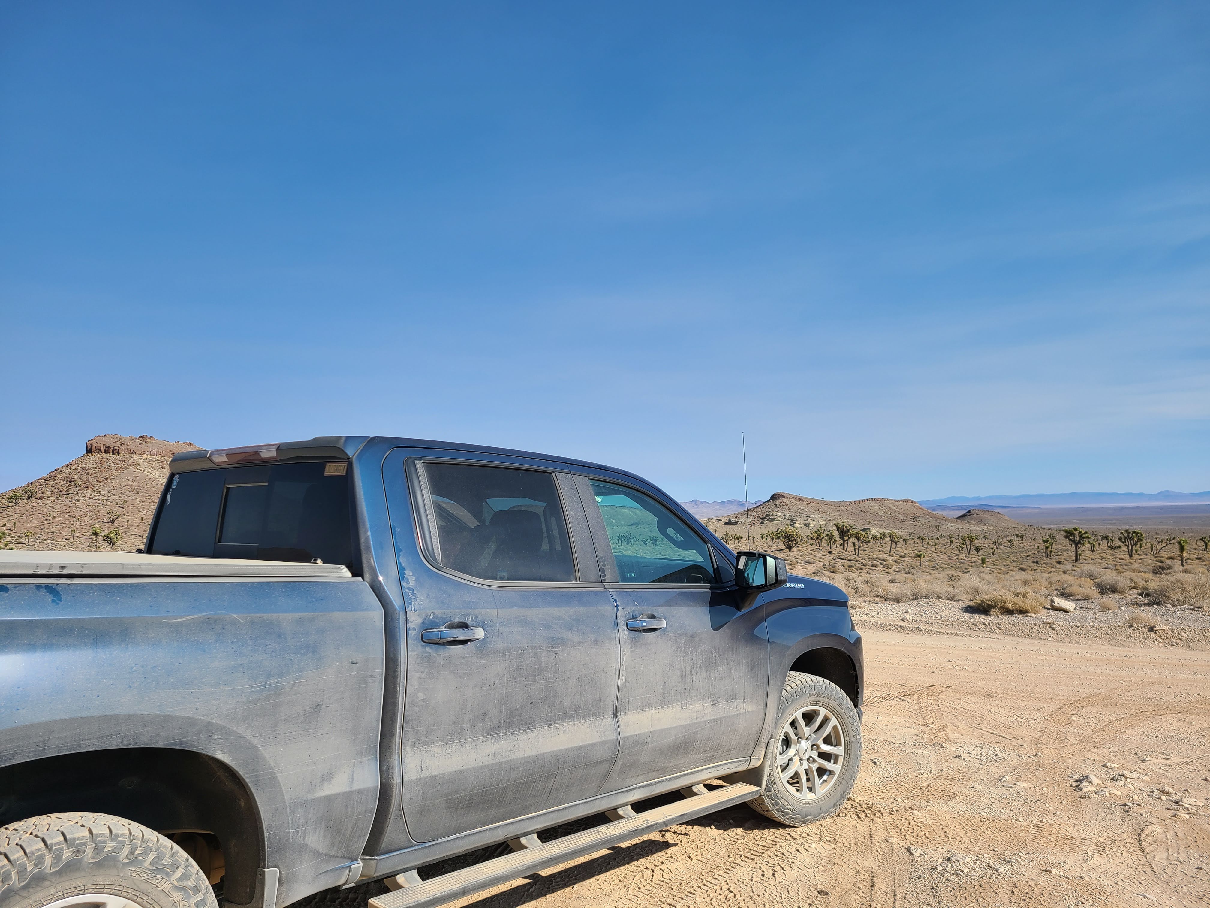 The second night, we were at the very dusty but incredible Gemfield Road BLM dispersed camping in Nevada. It was located directly off a main route, which we could see from our camp site but surrounded by the most amazing Joshua trees and desert landscape. This site is by far the dustiest site we have ever visited, and as soon as you stepped outside, you might as well have rolled in powdered sugar, as that is exactly the consistency of the dust. It covered absolutely everything.