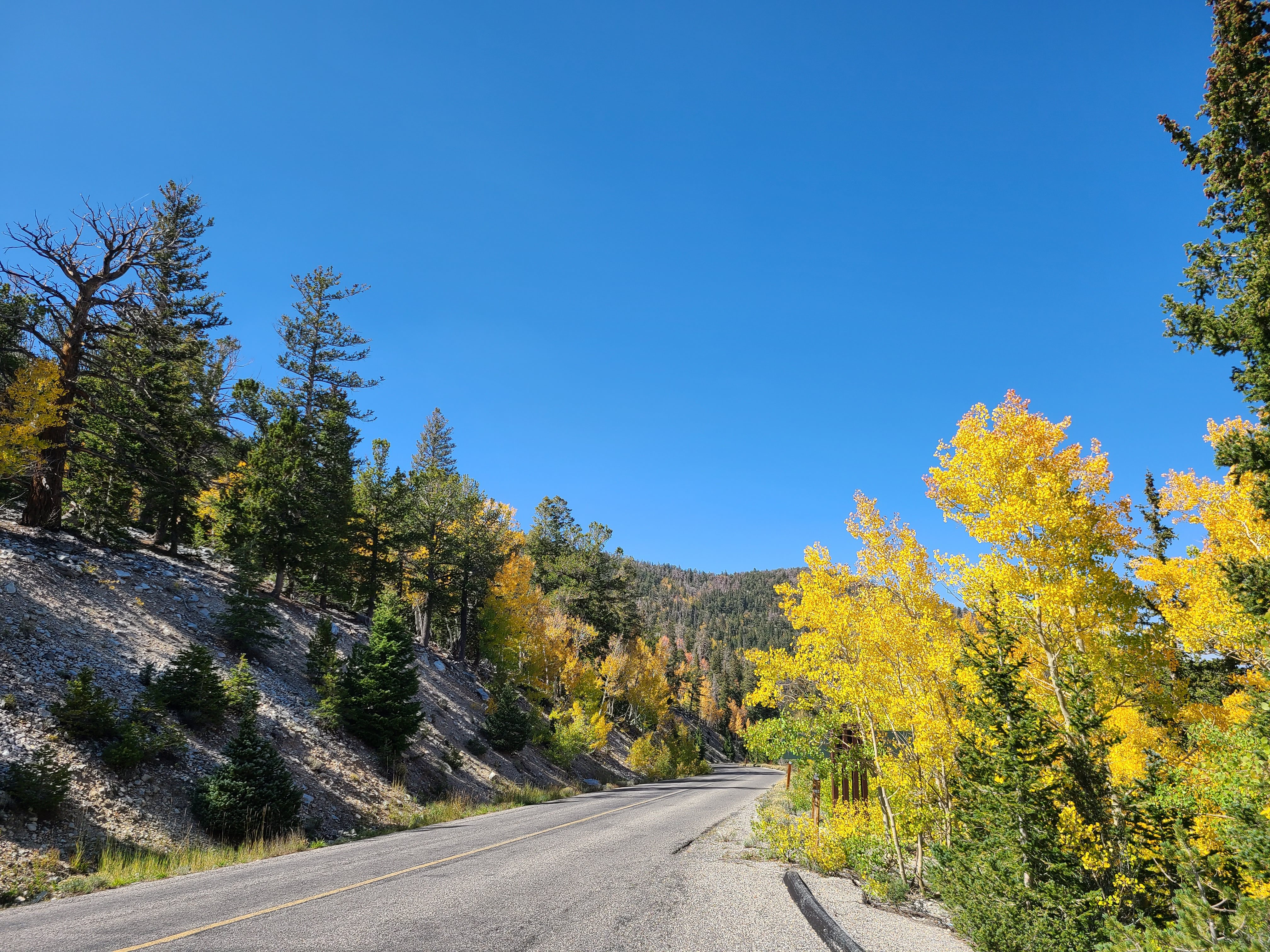 Since we are clearly not the only ones who are unfamiliar with this park, the Visitors Centers are very small and operating on abbreviated hours, so we first made our way to the 1 that was open before heading up Wheeler Peak. There seem to be 3 primary attractions at the park: Wheeler Peak Scenic Drive and the various associated hiking trails along the way, the Lehman Cave, and the apparently incredible stargazing that the dark Nevada sky has to offer. We had Daisy along, so we automatically counted ourselves out of the cave tour and any backcountry hiking, and we were not willing to totally throw off Bird’s schedule, so stargazing was also not on our agenda, but we were super excited for the drive up the Peak.