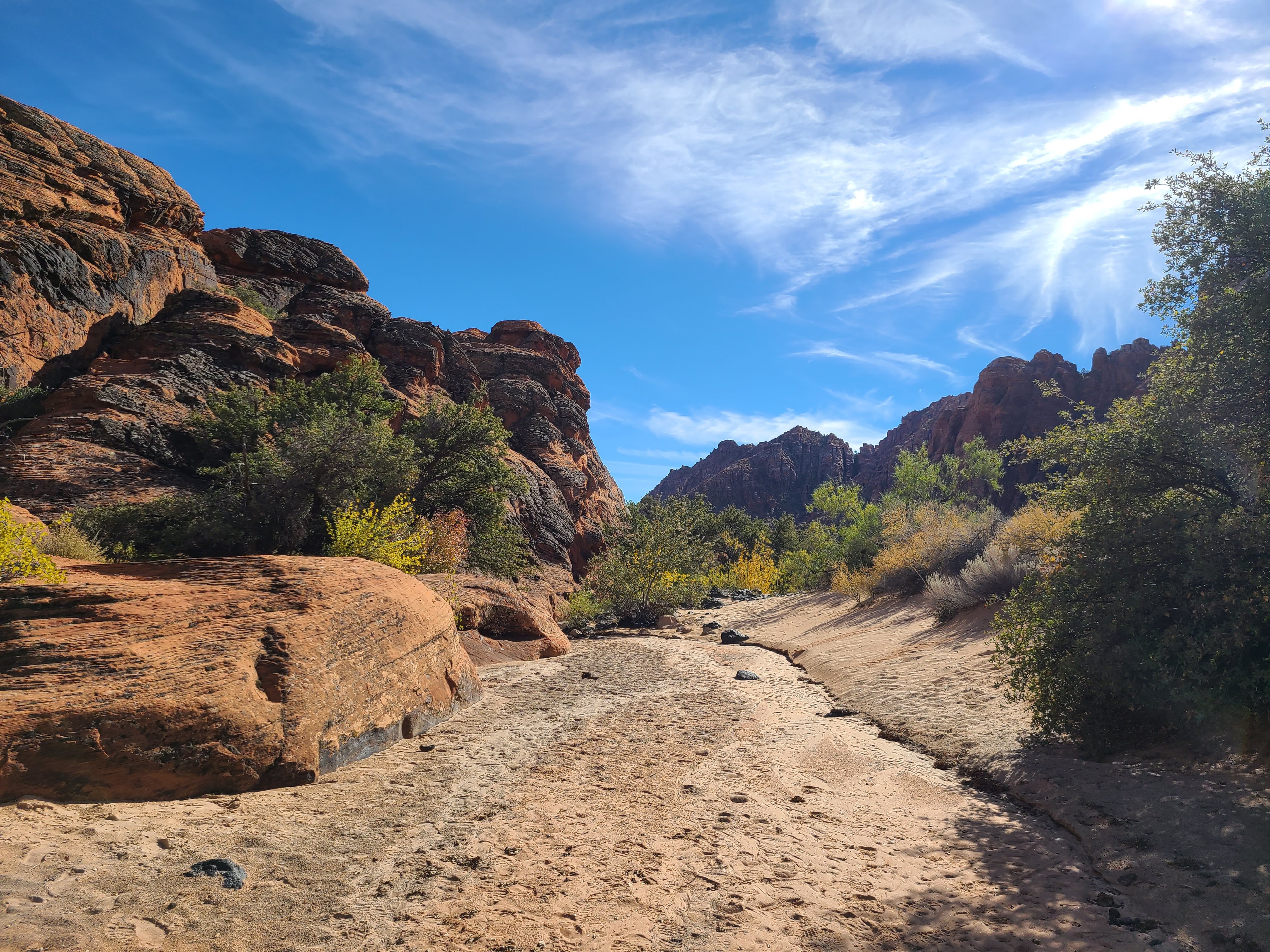 The really tricky thing about the trails in Snow Canyon is that they are not particularly easy to walk on. They are either deep sand, chunks of lava, or an awkward and uncomfortable mix of the 2. Aside from 2 short portions of my hike that were on paved trails, the duration of the hike was on less than stable or solid ground.