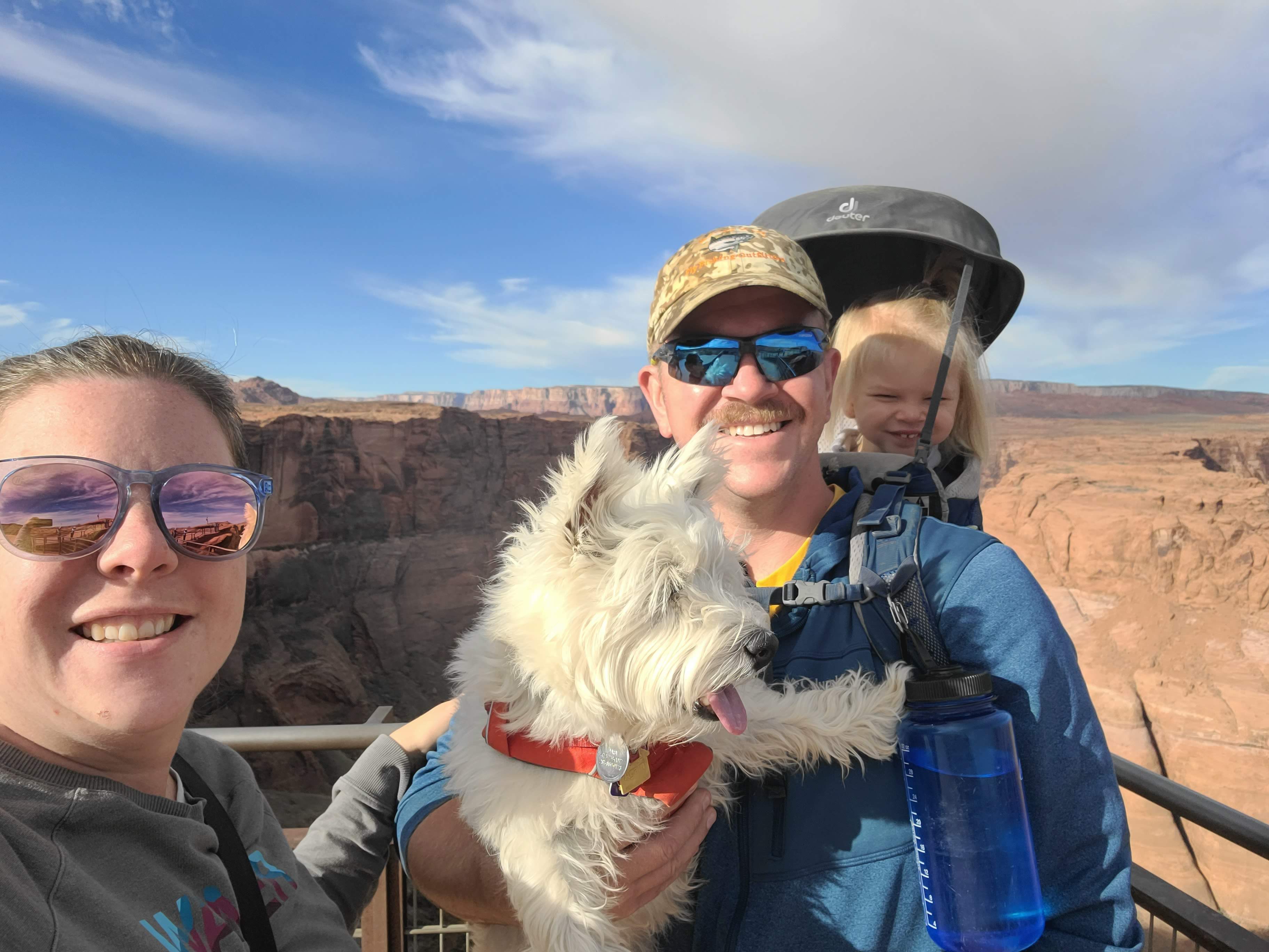 Once we were all up and going, we took a quick trip to Horseshoe Bend across the border in Page, Arizona. While this scenic spot is technically part of Glen Canyon, the entrance belongs to the City of Page, and thus the $10/car fee is not covered by the interagency pass or any other typically recognized pass.