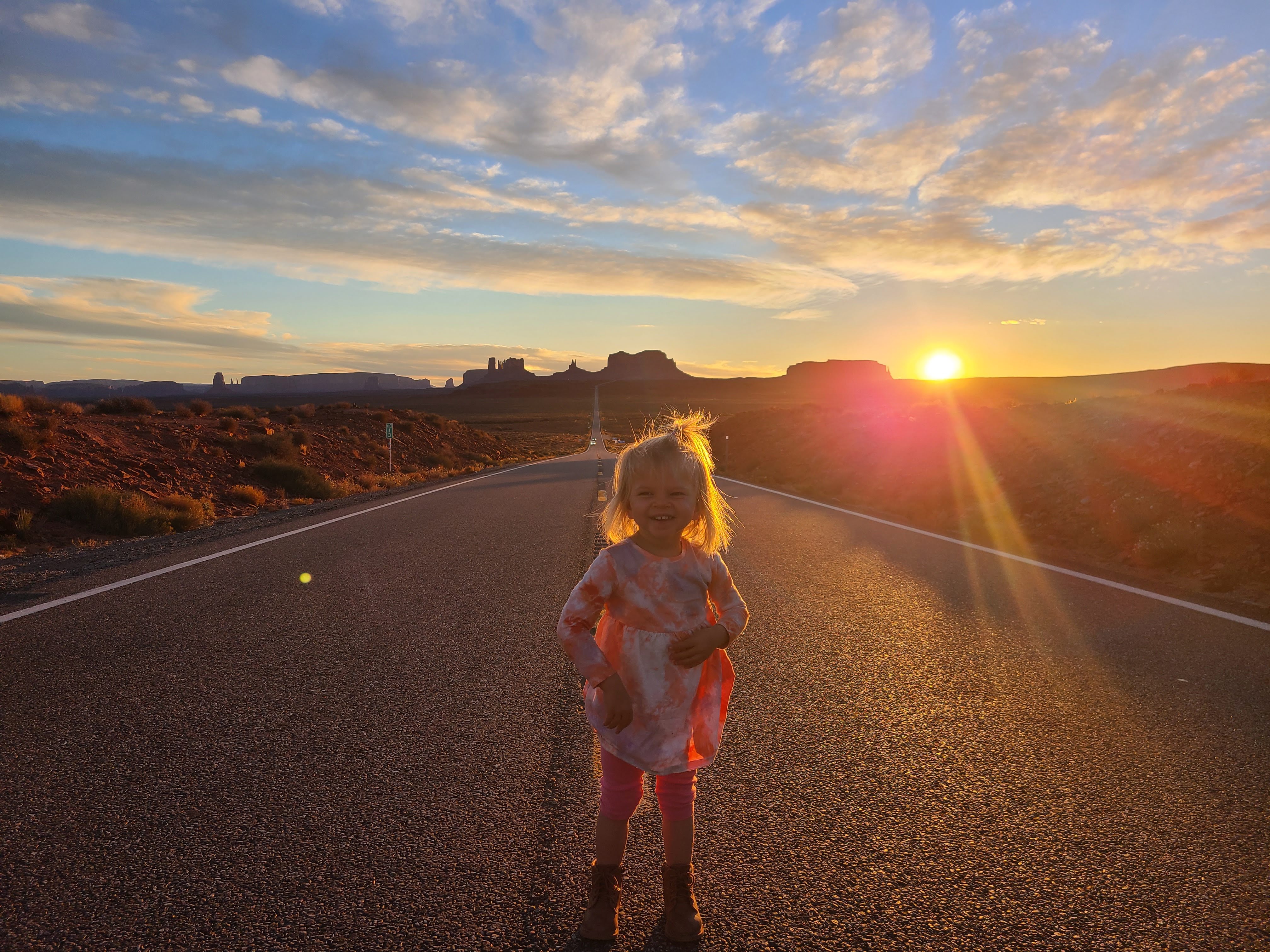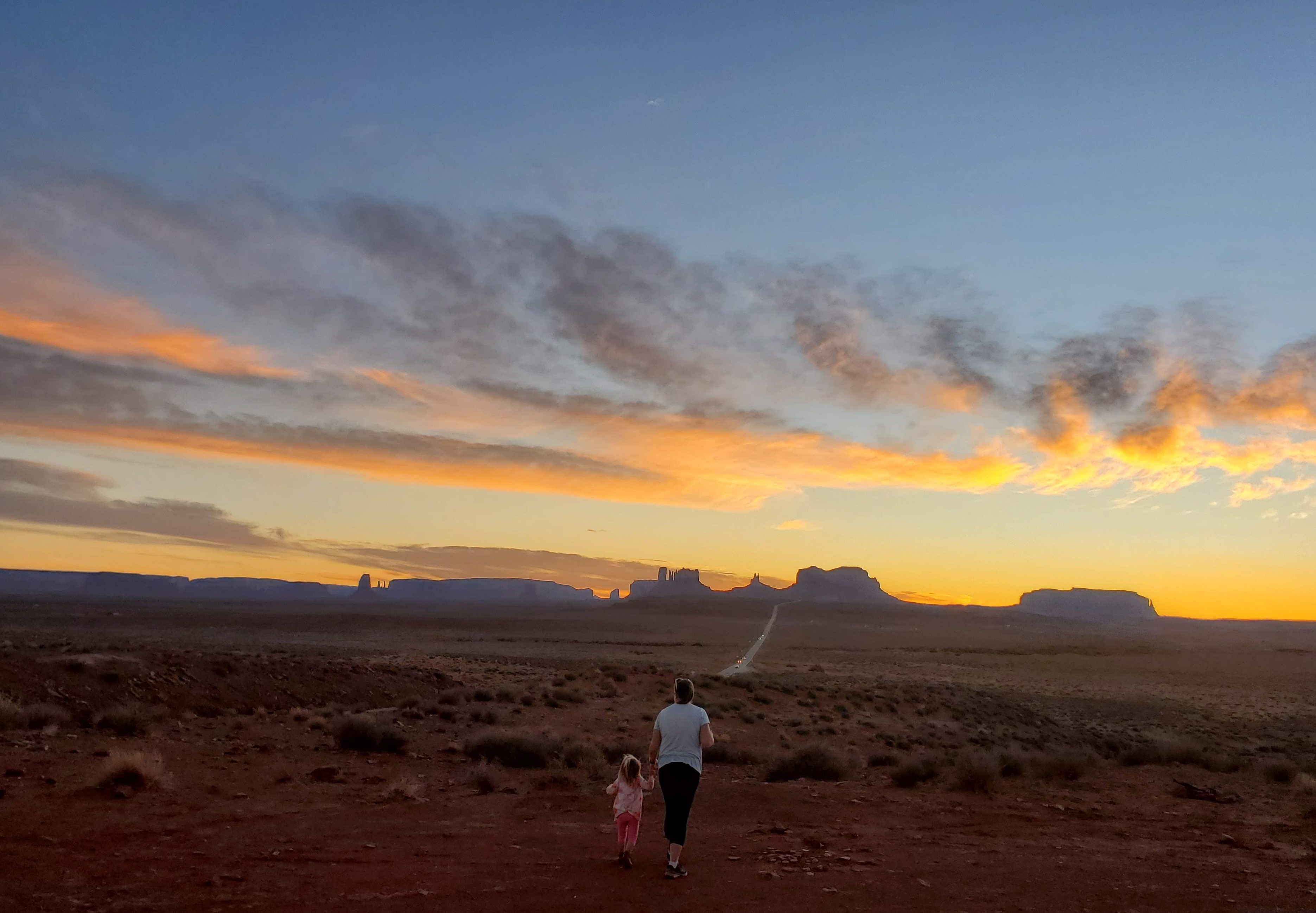 Once we got set up and settled, we made our way back to Monument Valley and the famous Forrest Gump Point (the point where he famously stops running) for sunset. Even though there were quite a few people there and it is a little disconcerting to stand in the middle of a highway to take your picture, it was an incredible experience (traffic was really light and having all those eyes watching traffic for you was actually rather nice). Everyone there was super nice, and every person or group was given adequate time to get the photos they wanted. It was really a friendly and cordial experience. However, once we got our photos, we made our way across the street and hung out in a much safer environment to watch the sun fully set. It was just beautiful.