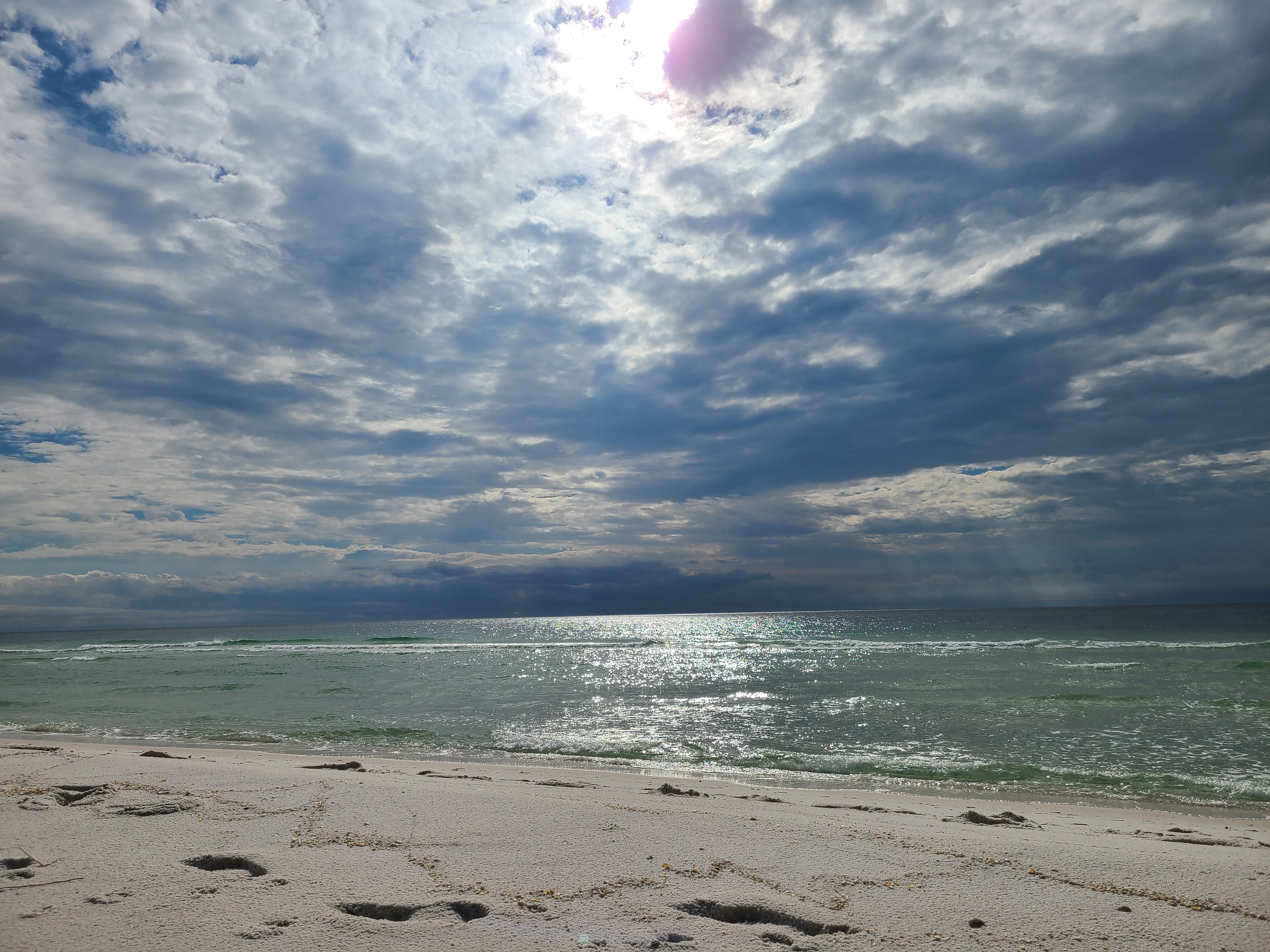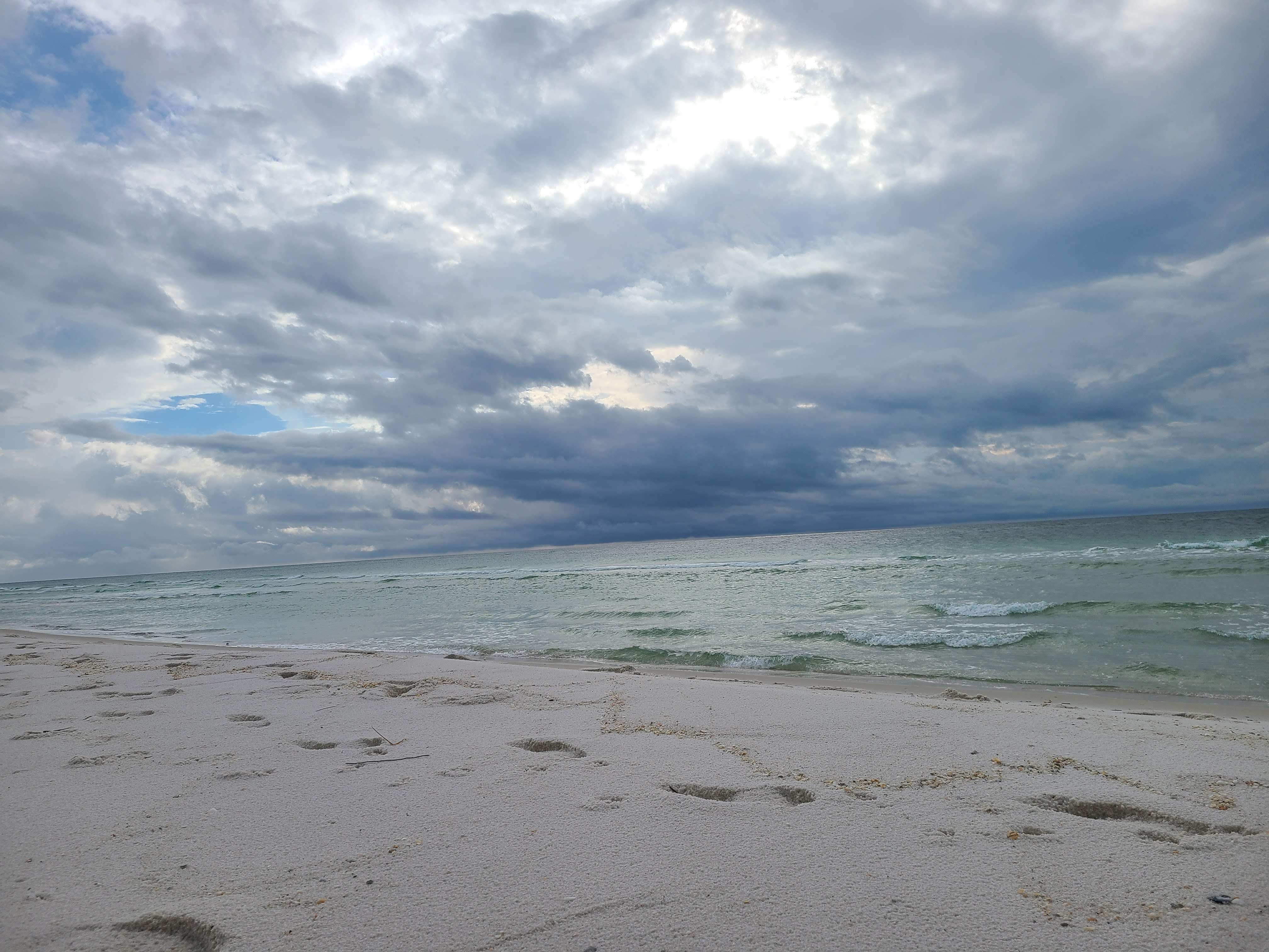 We were so excited to return to Fort Pickens after first visiting earlier in 2021. While it is very secluded and remote, it has beautiful beaches within a short walk of the campground. So, when Will was expecting a call one morning, Bird and I made plans to walk to the beach, even though there were a few showers in the forecast.
