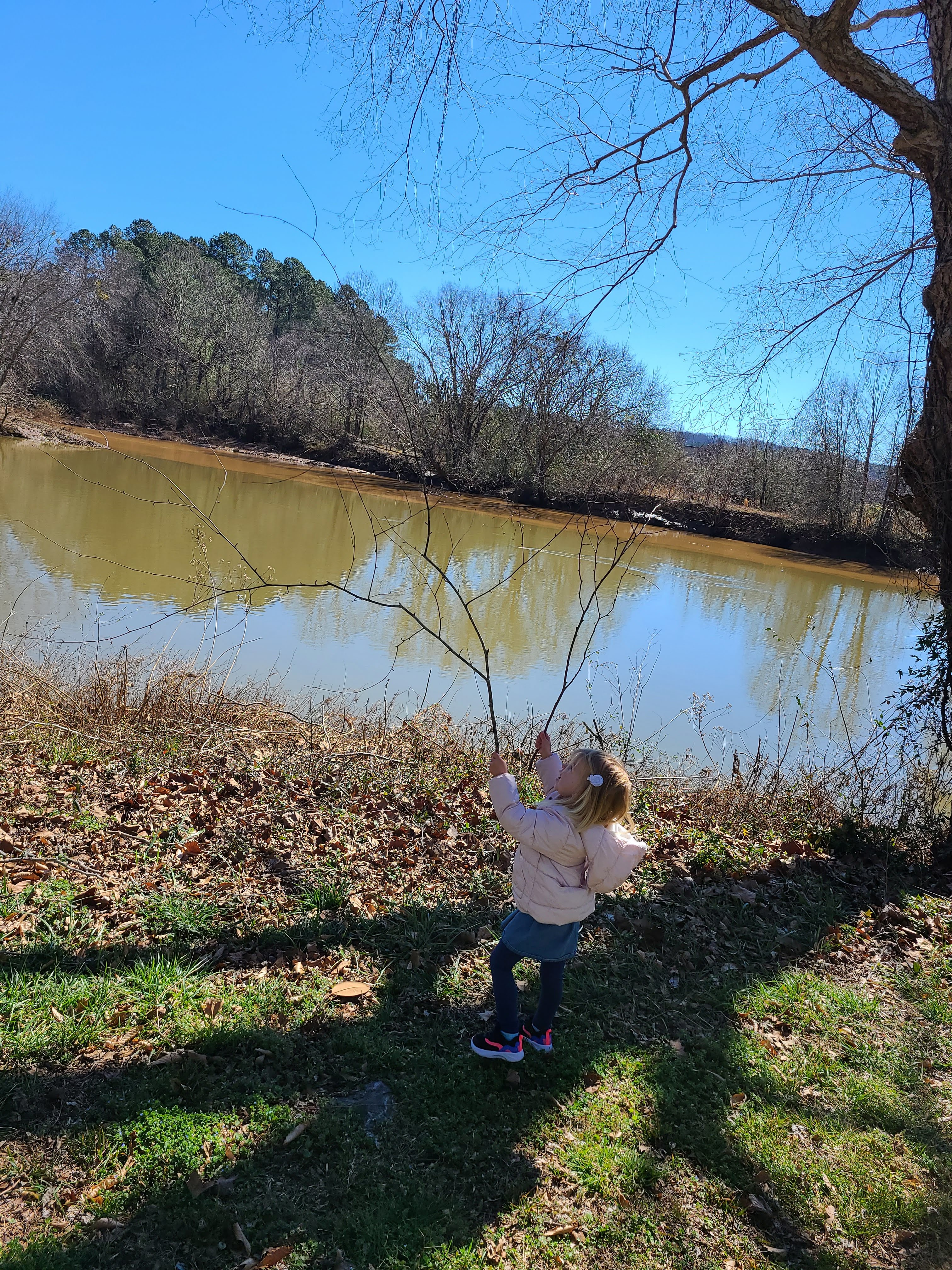 We made our way to the river, where she threw a couple of sticks into a bigger pile of sticks and walked back and forth and back and forth across a really big bench.